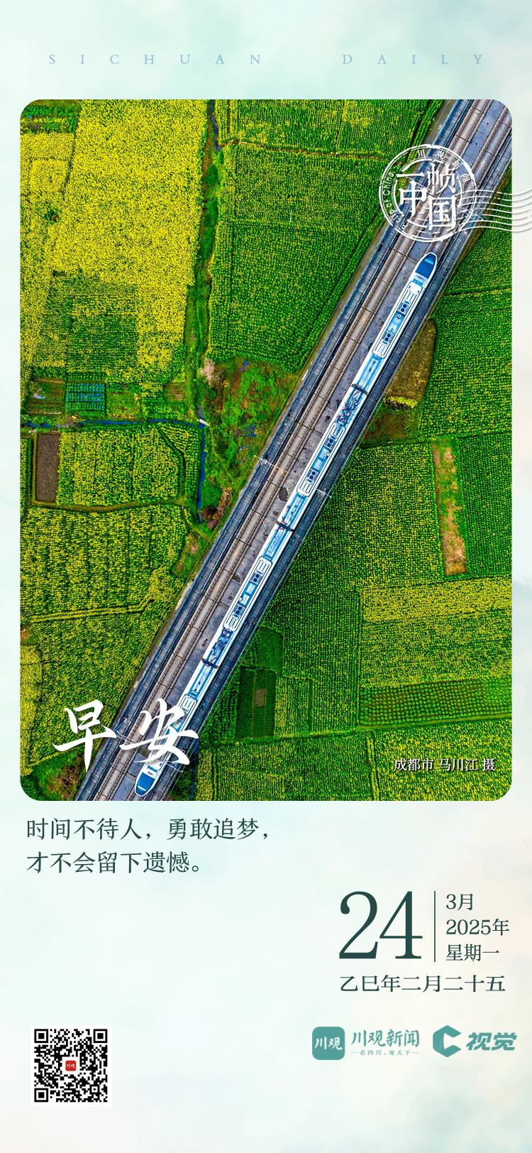 春日已至,繁花盛开,今天的《一帧中国》,川观新闻带你乘上飞驰的动车组,穿越春意盎然的田野,奔赴最美的春天。