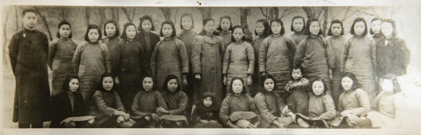1952年冬,初1955届学生代表与中国人民志愿军归国报告团代表合影