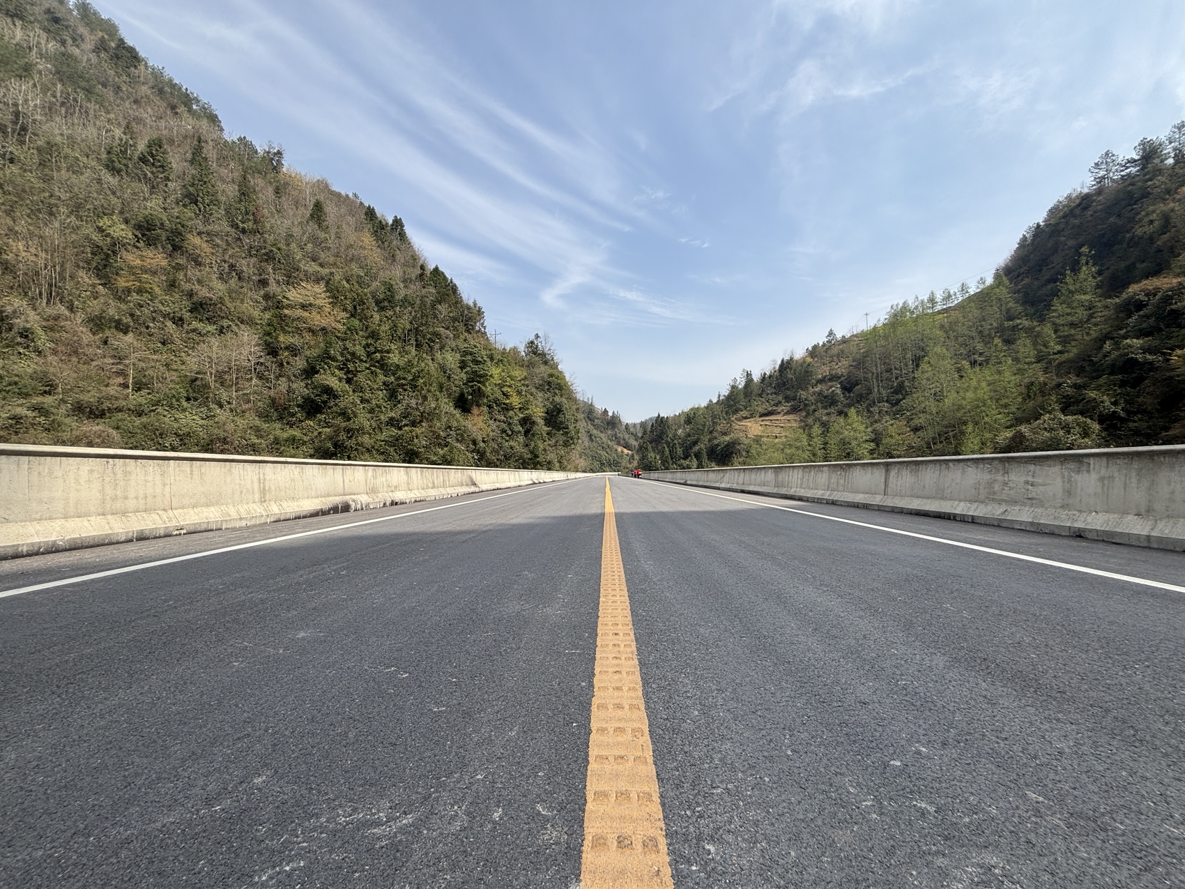 3月20日,达州万源市S302铁矿至黑宝山道路建设项目现场。碧山之间,一条连接铁矿镇与黑宝山景区的沥青混凝土路面双向单车道贯穿其中,整条路线全长44.65公里,起于包茂高速公路铁矿互通连接线,途经铁矿镇、长坝镇、黑宝山镇,止于黑宝山景区外缘黄寺坪处。