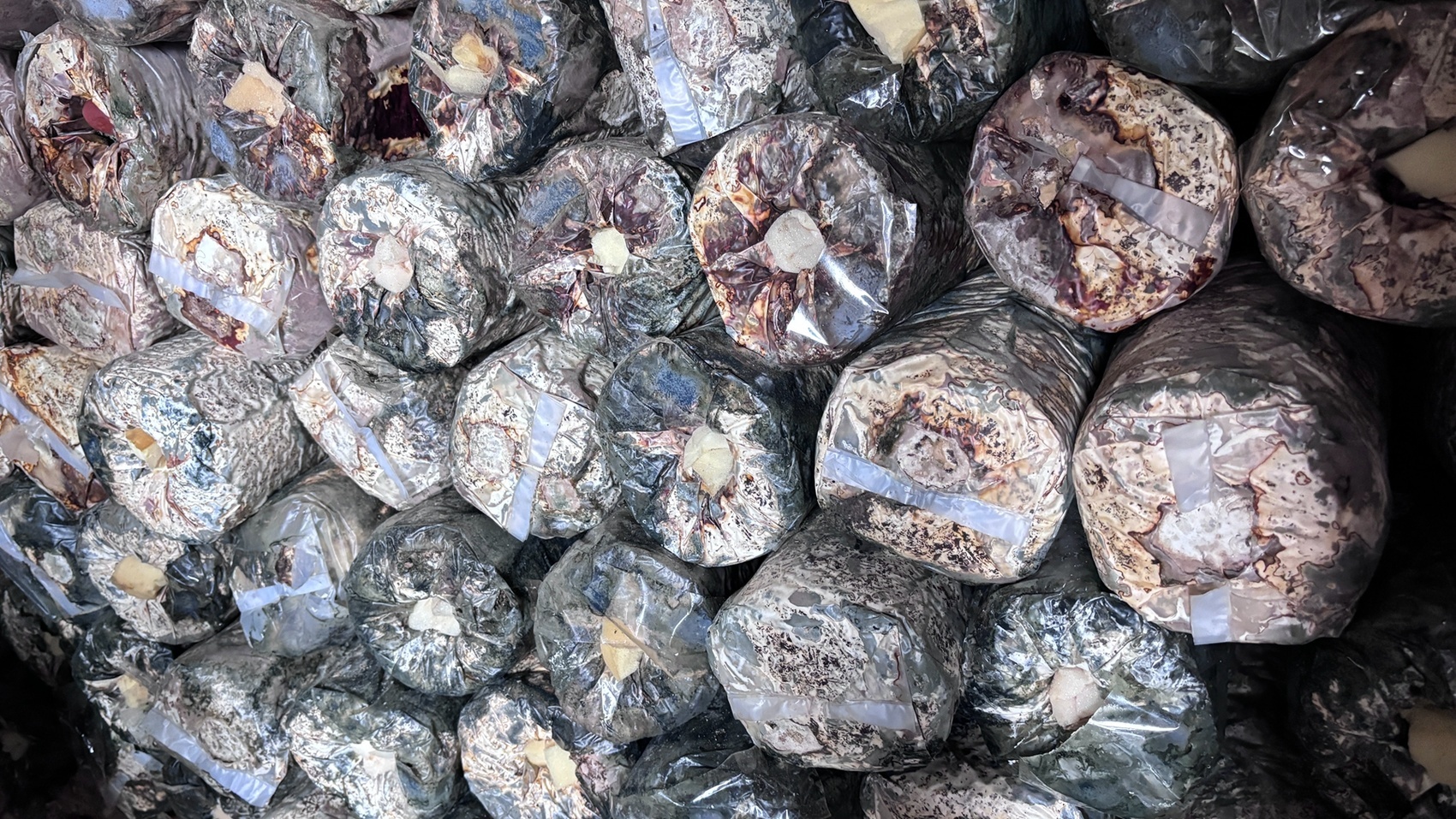 冯先生家中的菌包一半没出菇,部分袋子出现了绿色霉菌。资料图片