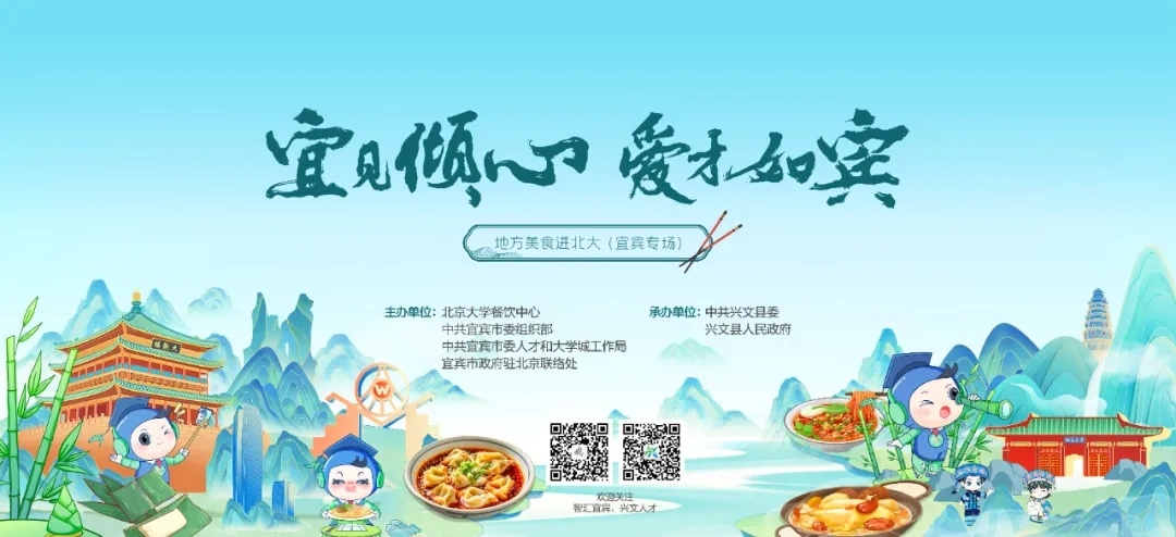 据悉,活动由北京大学餐饮中心、中共宜宾市委组织部、宜宾市委人才和大学城工作局、宜宾市政府驻北京联络处主办,兴文县委、县政府承办,通过美食展示、非遗体验、政策推介等多种形式,搭建宜宾与顶尖高校人才的交流平台,吸引青年学子了解宜宾、走进宜宾、爱上宜宾、择业宜宾。