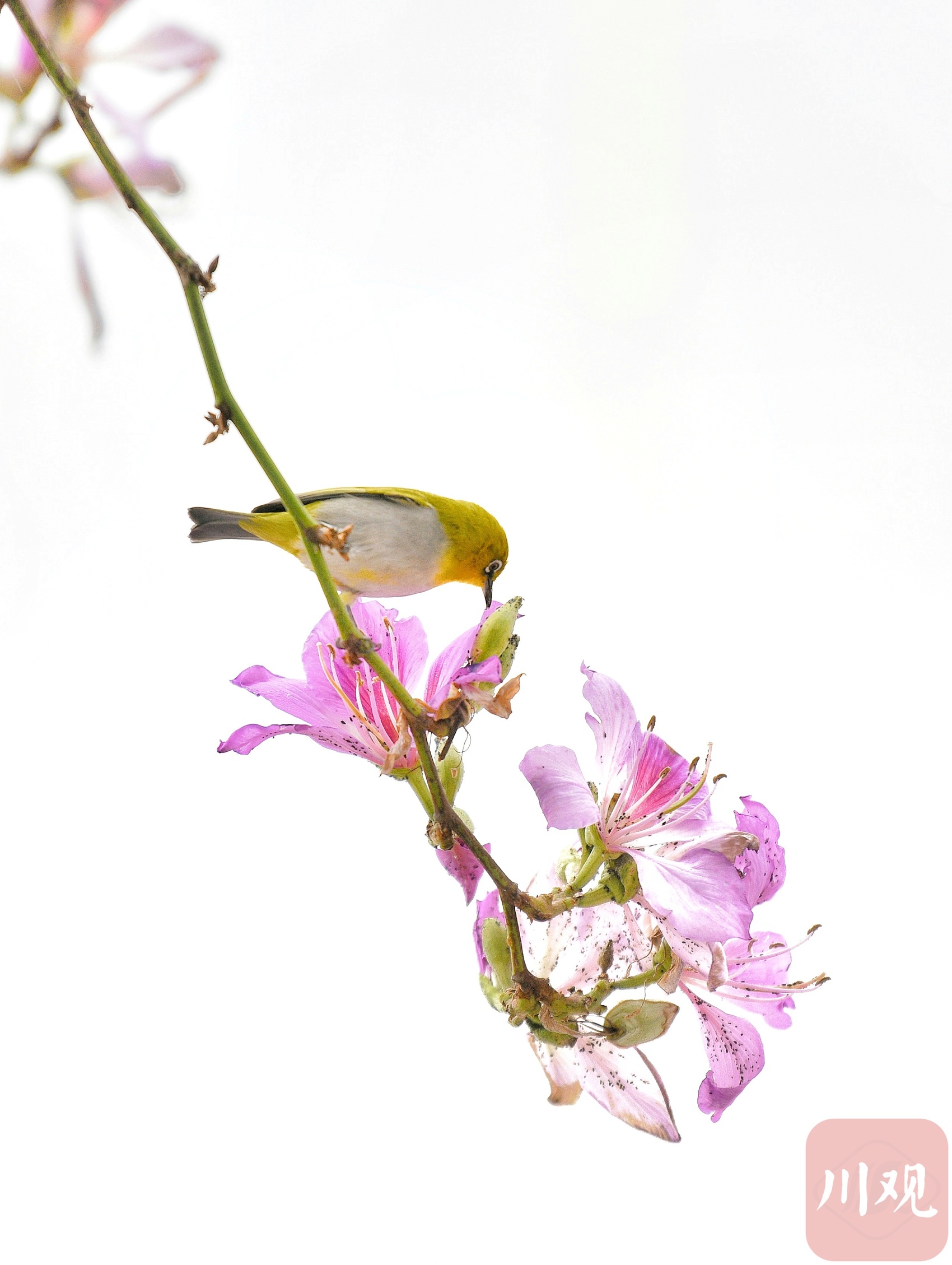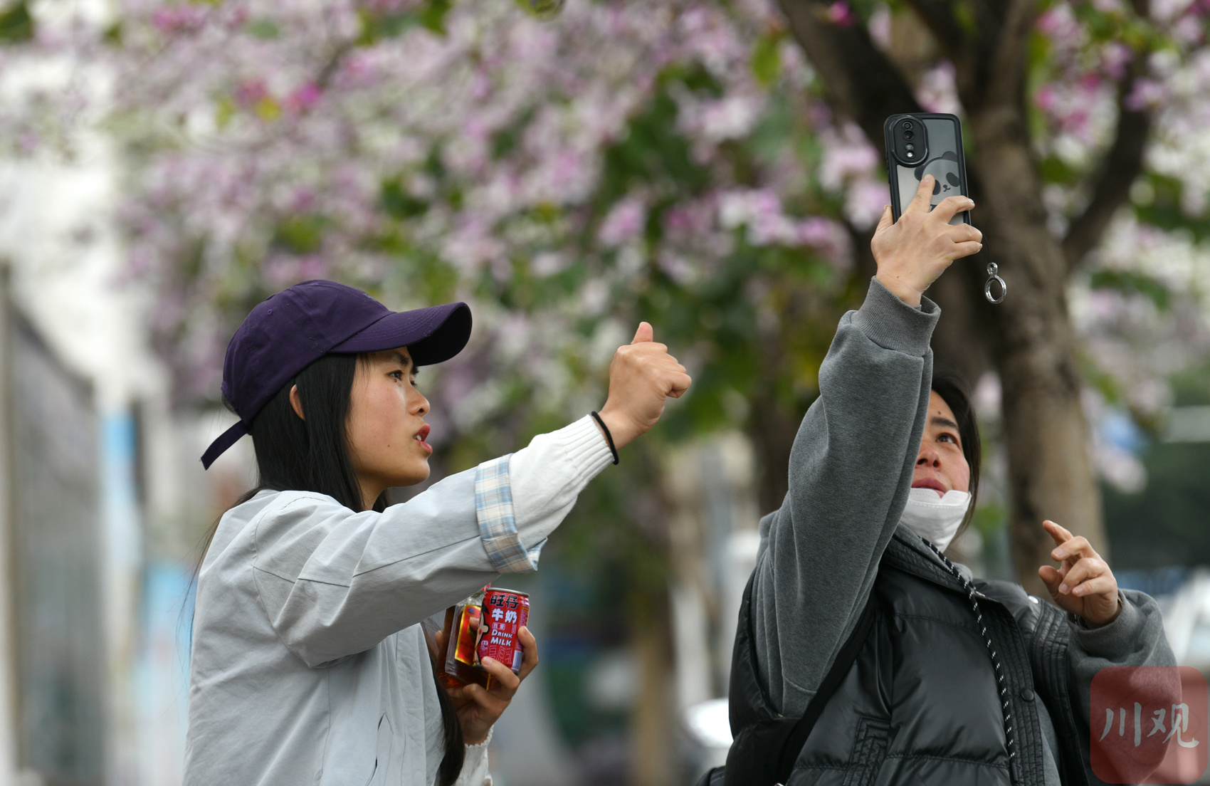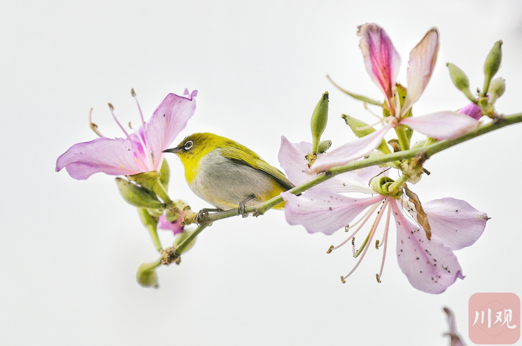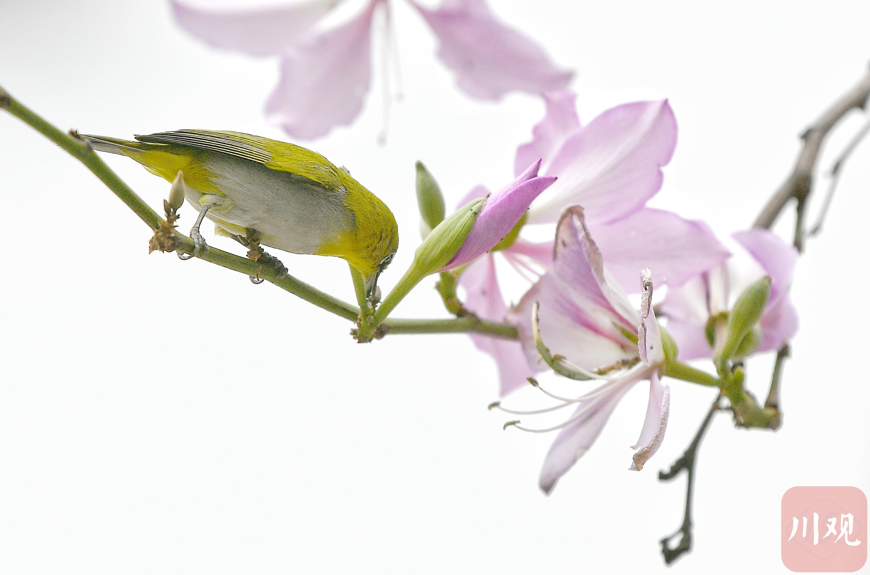 三月的西昌,迎来了一年中最浪漫的视觉盛宴。23日,在胜利北路一带的沿街两侧,大片宫粉紫荆在暖阳下舒展身姿,满树繁花如粉色云雾般笼罩街道。宫粉紫荆又称洋紫荆,花瓣呈淡粉色或浅紫色,记者在现场还观察到白色花瓣。它们随风摇曳,形似翩翩蝴蝶,成群的灰腹绣眼鸟也在花枝间觅食。每年三月,西昌的宫粉紫荆进入盛花期,尤其是风吹过时的“花瓣雨”场景,层层叠叠的粉色花朵与蓝天白云相映成趣,吸引大量游客和当地人驻足拍照。他们说,西昌的春天不止有蓝花楹,宫粉紫荆的柔美同样值得驻足欣赏。快抓住花期,去邂逅这份转瞬即逝的粉色浪漫吧。