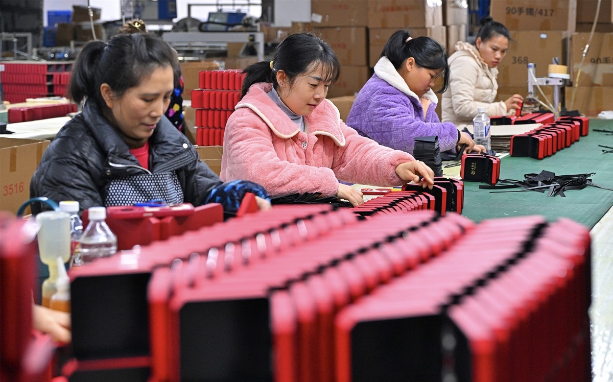 在仁寿县经济开发区的成都创兴科联光电有限公司生产车间,工人正在赶制订单产品。