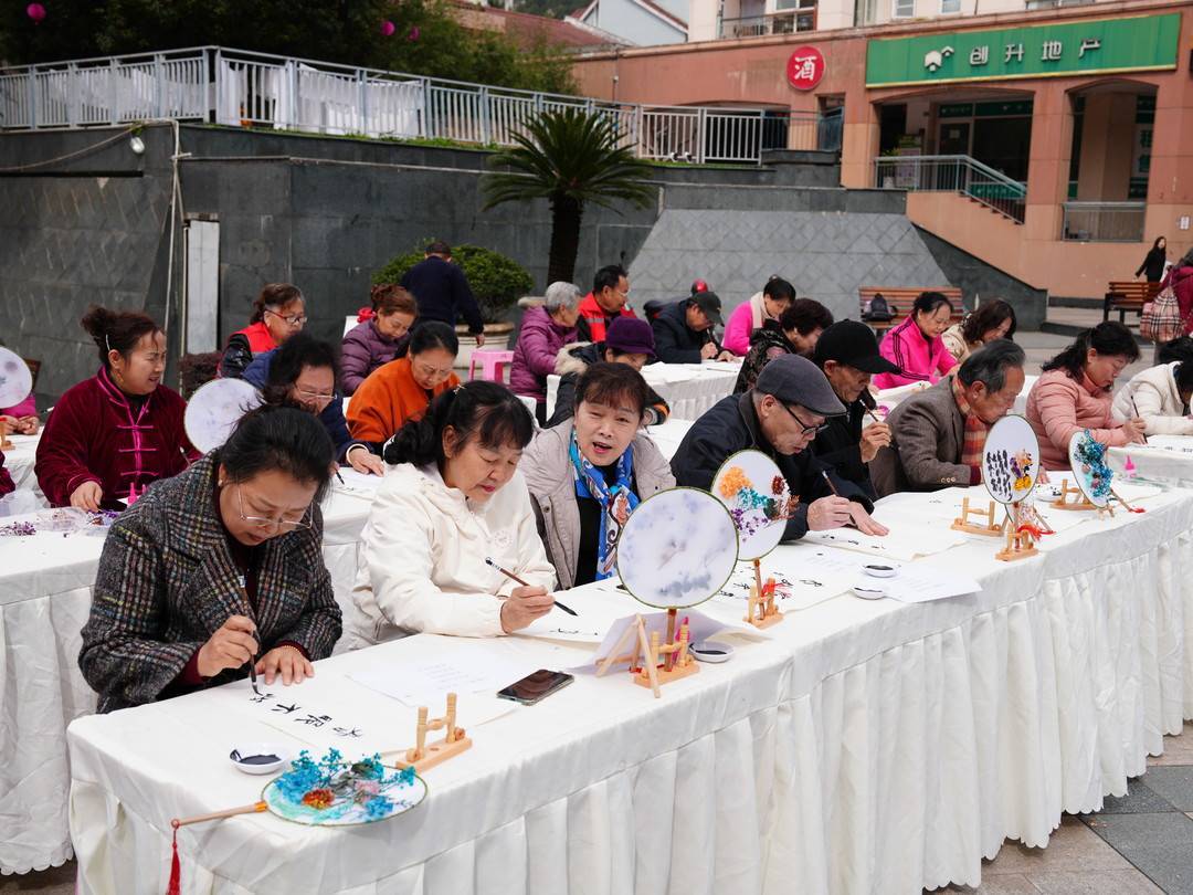 活动尾声,居民作品在展示区“争春”。大家驻足品评,或赞叹书法笔力遒劲,或调侃木扇创意“脑洞大开”。社区工作人员介绍,居民们会将这些作品带回家,“让艺术之美持续滋养居民生活,也为基层治理增添人文温度。”