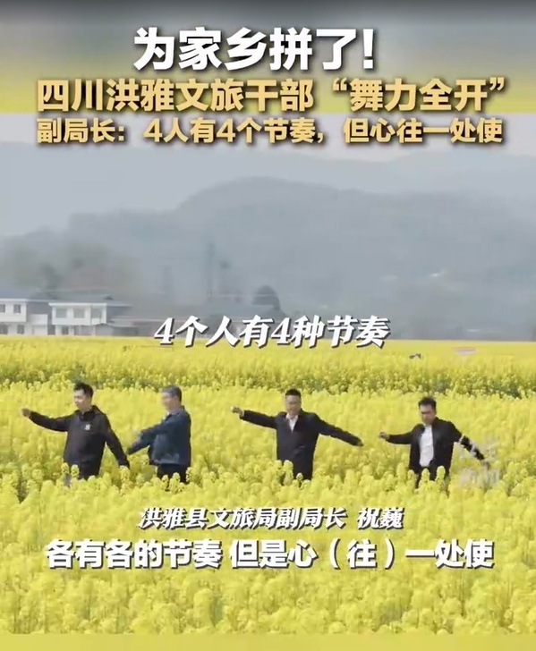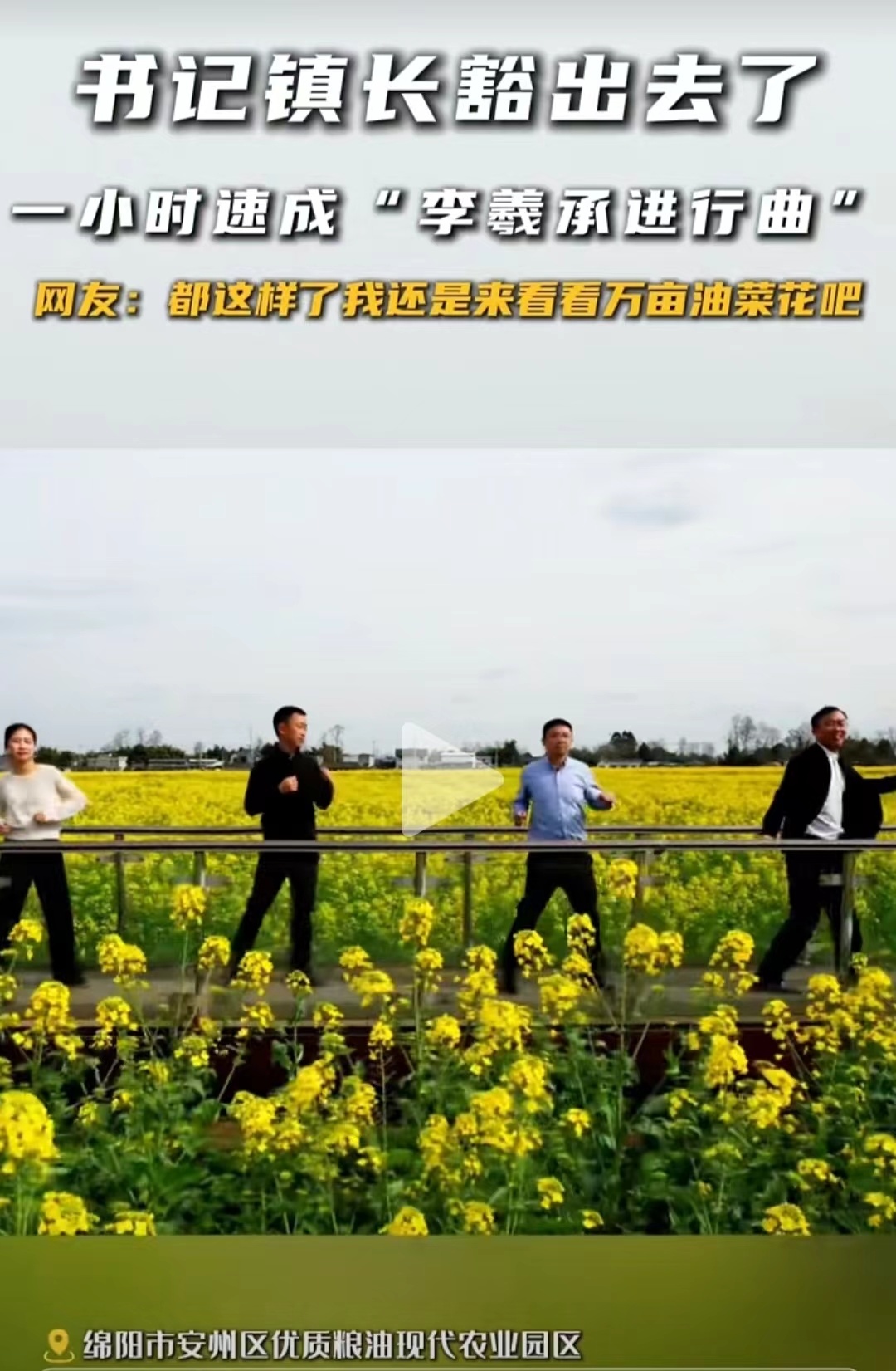 春日的川西坝子上,金黄的油菜花海间,绵阳市安州区秀水镇四位基层干部集体“尬舞”,笨拙的舞步在短视频平台意外收获超百万点赞。这场基层干部的“舞”力全开,低成本实现高传播效率的“高性价比”模式,如同投入湖面的石子,瞬间激起了各地效仿的阵阵涟漪。