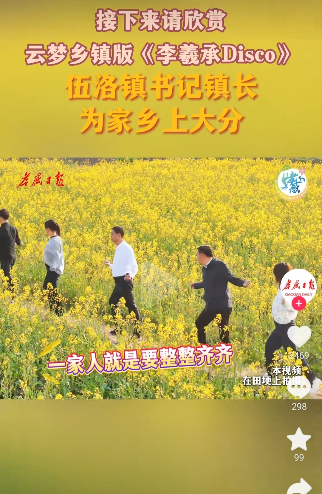 在传统印象中,乡镇干部的公众形象往往与文件堆后的严肃面孔重合。秀水镇的干部们却选择在农忙时节的油菜花田里,用沾着泥土的皮鞋踏出欢快的节奏。网友评价,“原装书记一本正经,散装舞蹈笑掉大牙”,成功打破基层干部严肃形象,拉近与公众的距离。