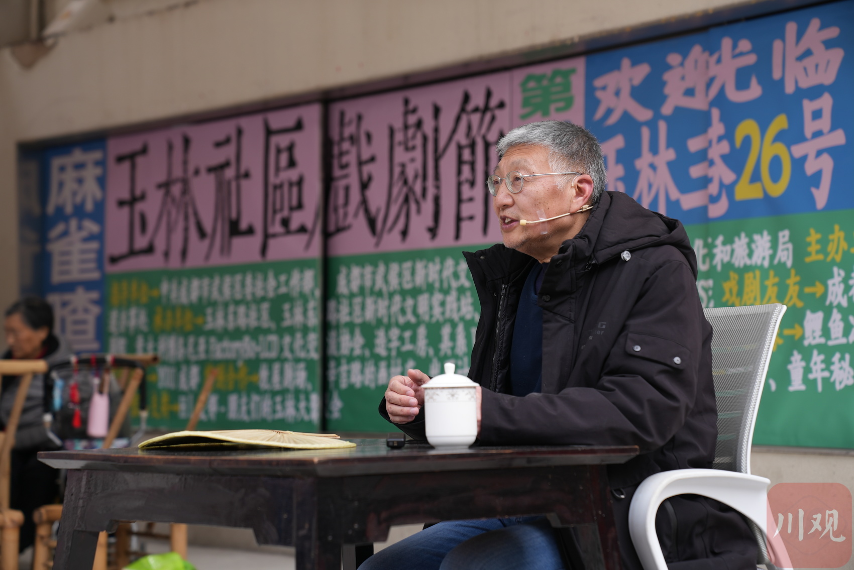 社区居民、退休职工梅杨在戏剧节现场脱稿开讲三国人物传