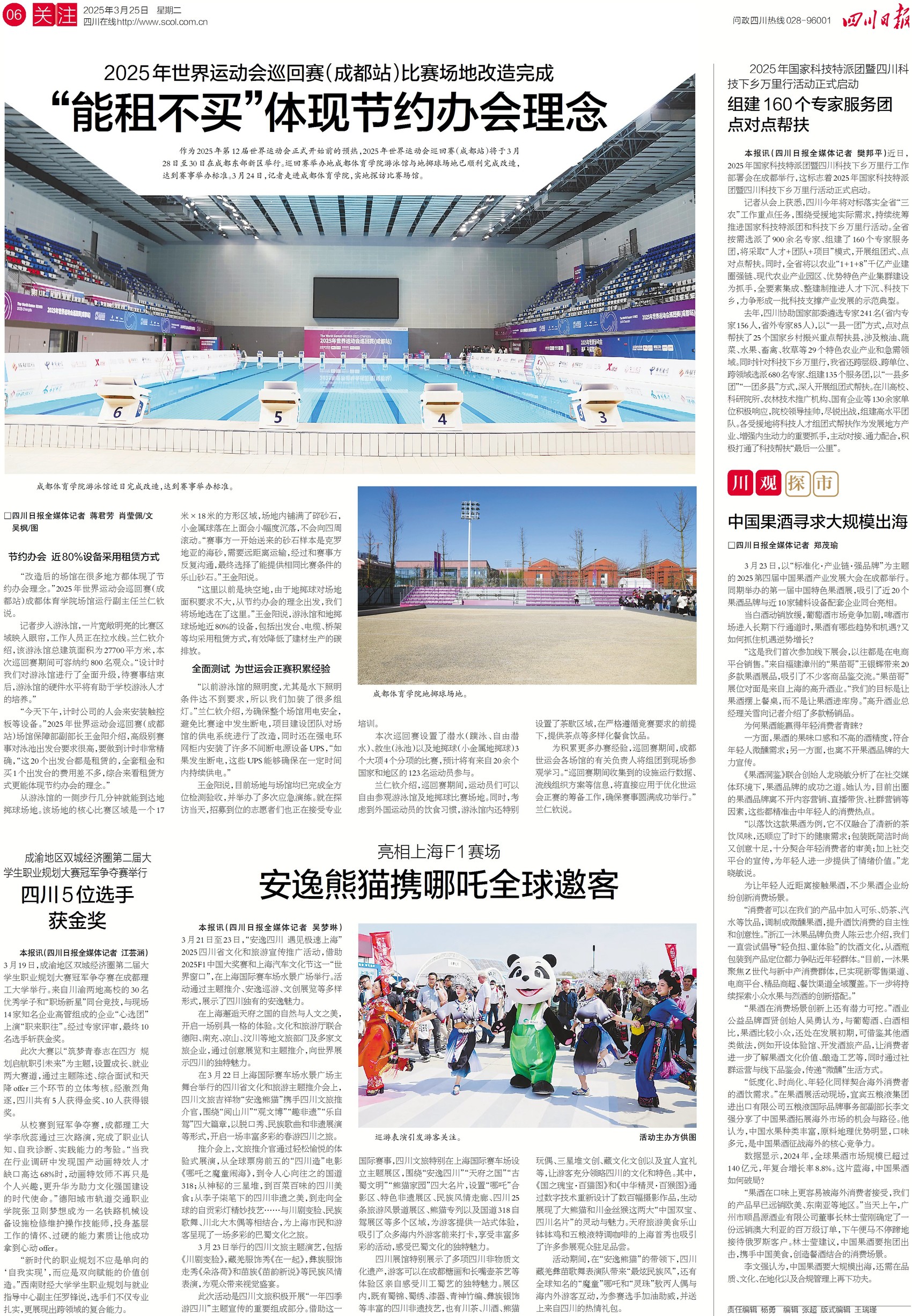 作为2025年第12届世界运动会正式开始前的预热,2025年世界运动会巡回赛(成都站)将于3月28日至30日在成都东部新区举行。目前,该巡回赛的举办地,成都体育学院游泳馆与地掷球场地已于顺利完成改造,达到赛事举办标准。今日六版,记者实地探访比赛场馆从细节揭秘办赛理念。