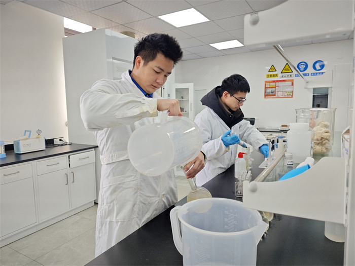 餐厨垃圾处理厂实验室内,工作人员正在取样,对生产各个环节的质量进行把控。