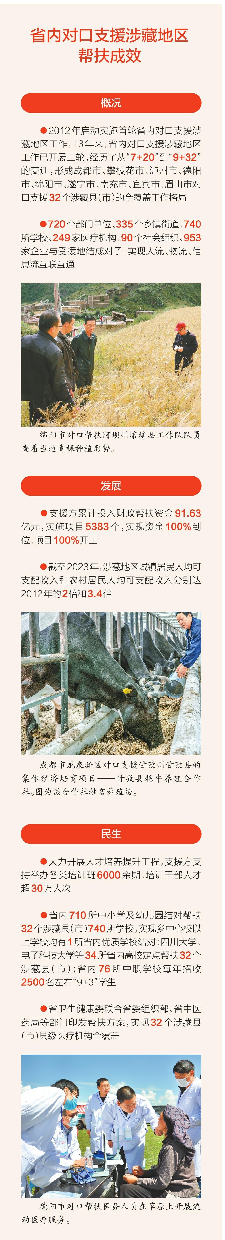 这是我省将“输血”与“造血”相结合,切实增强受援地内生发展动力的缩影。省内对口支援涉藏地区工作启动以来,支援方累计投入财政帮扶资金91.63亿元,实施项目5383个,实现资金100%到位、项目100%开工。
