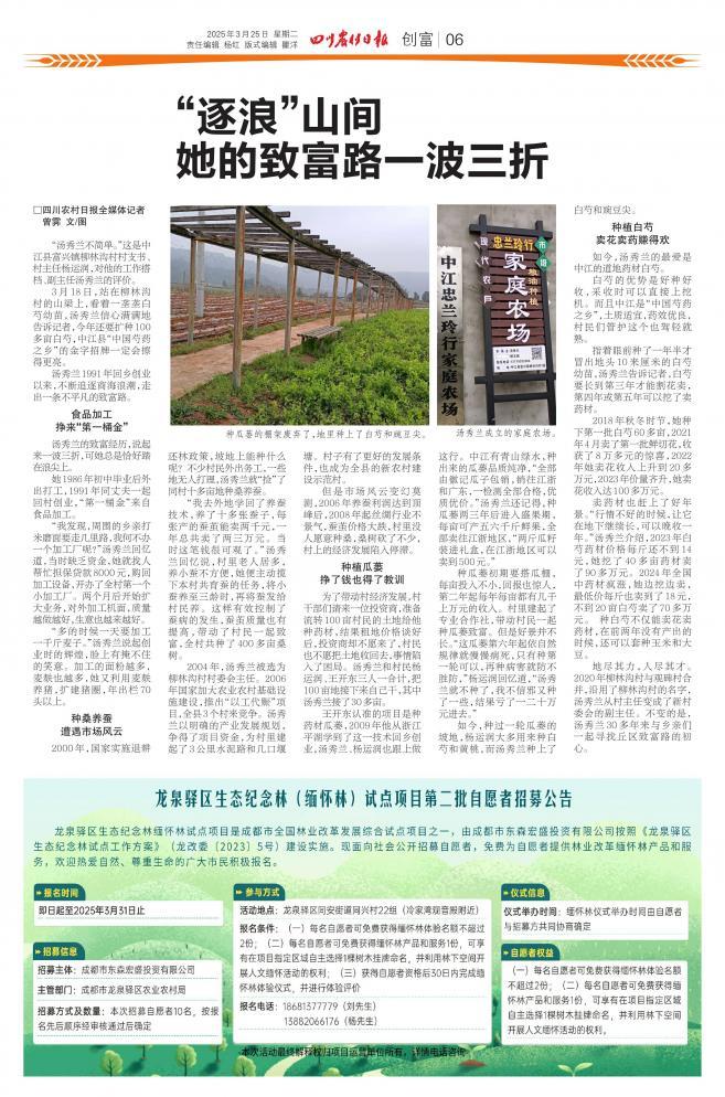 3月18日,站在柳林沟村的山梁上,看着一垄垄白芍幼苗,汤秀兰信心满满地告诉记者,今年还要扩种100多亩白芍,中江县“中国芍药之乡”的金字招牌一定会擦得更亮。