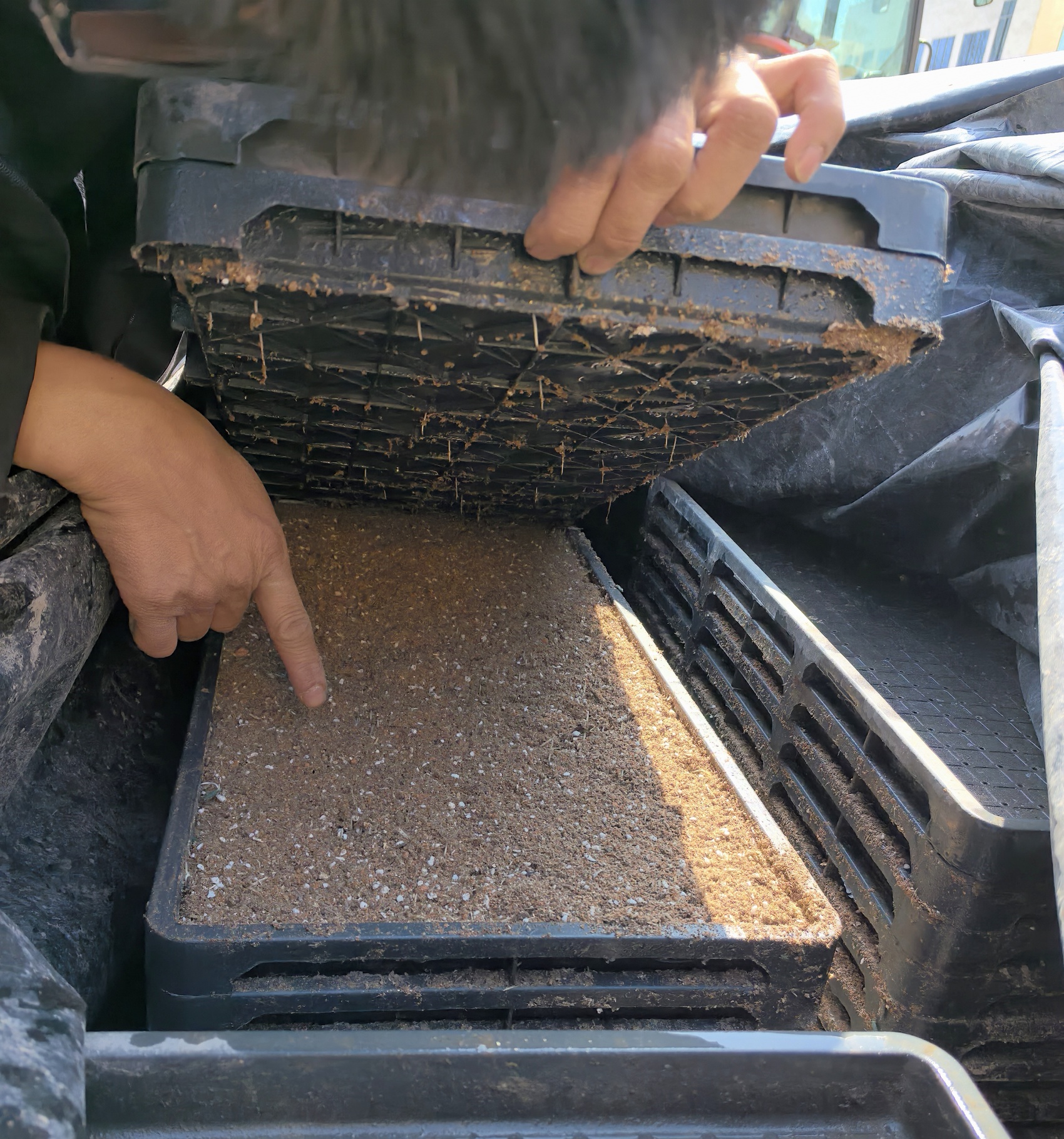 “我的水稻种是育在水泥地上的。”在新芽村党群服务中心院坝,向森林向记者展示他今年新尝试的暗化叠盘催芽育秧。他揭开两层黑色塑料膜,秧盘里种子突破营养基质,冒出芽苗。“这苗长得快,过两天换白色无防布遮,增强透气性。”