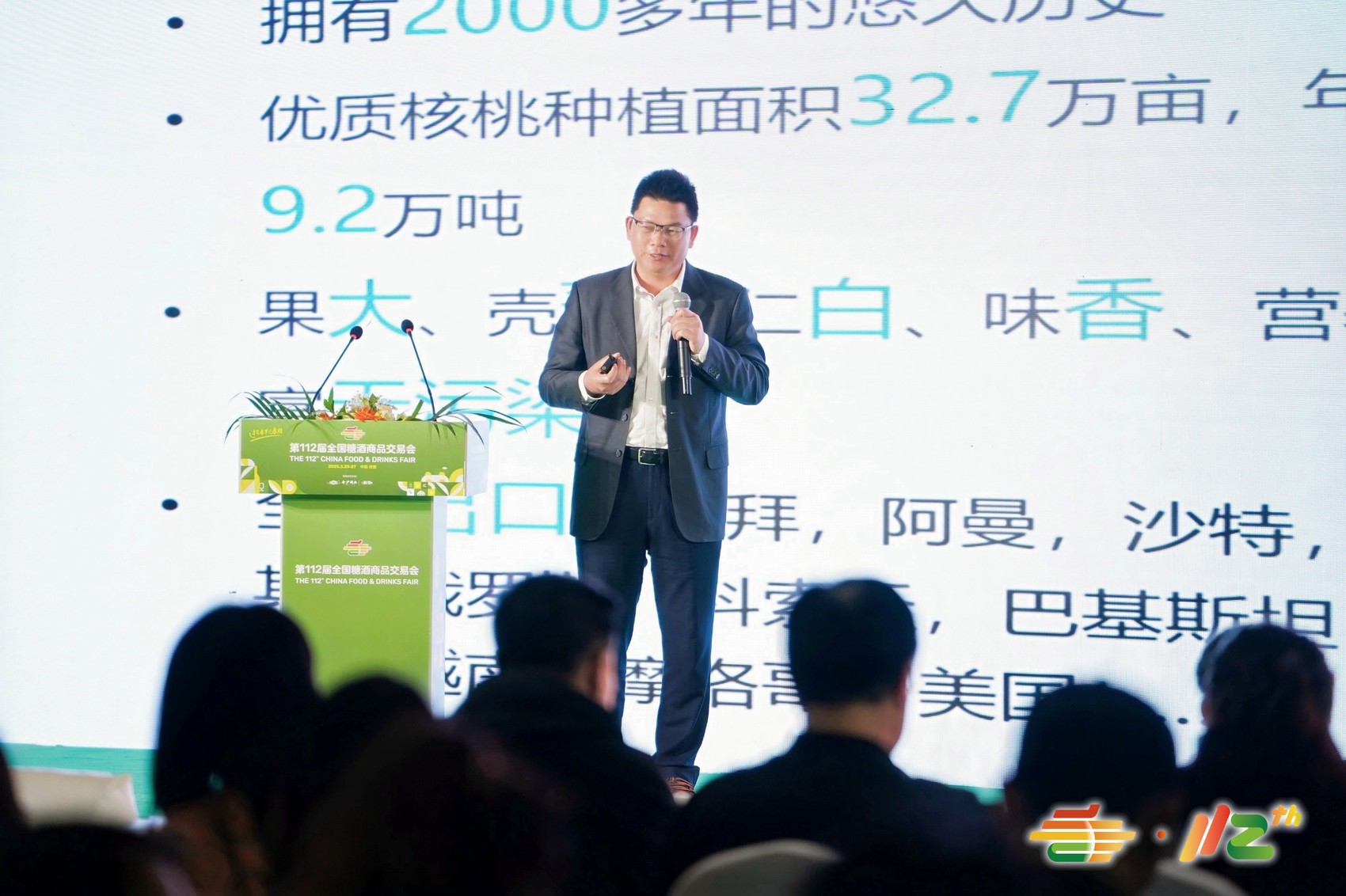 “我们吉林梅河口年加工松子仁产品超过10万吨,今天给大家推介我们生产加工的果仁。”