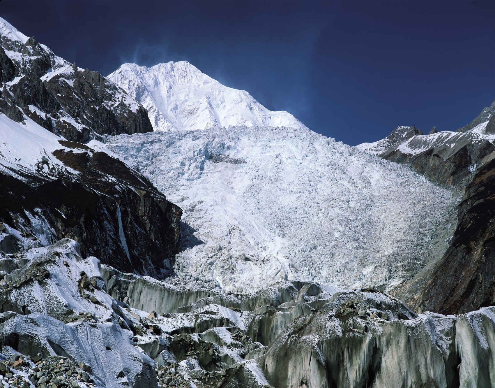 海螺沟冰川位于四川省甘孜藏族自治州泸定县,贡嘎山东坡,距成都约280公里,是青藏高原东缘极高山地的代表。其大约形成于1600万年前,主体由粒雪盆、冰瀑布和冰川舌三部分组成。