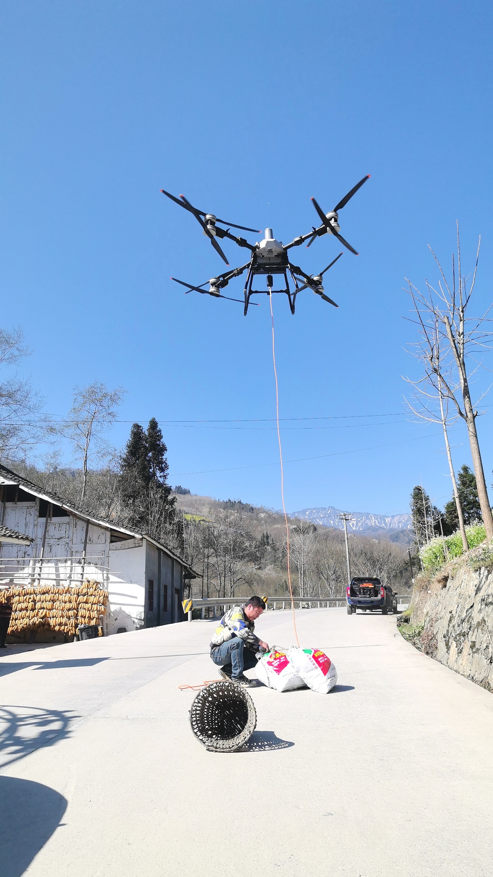 为提高山野菜运送效率、增加山野菜保鲜度,今年平武还采用了大型无人机将山野菜从山顶运送下来。无人机操作者吴波告诉记者,一台无人机每次最多可以运送300斤野菜,以往需要走两三个小时山路运送下山,如今只需4分多种就可完成。