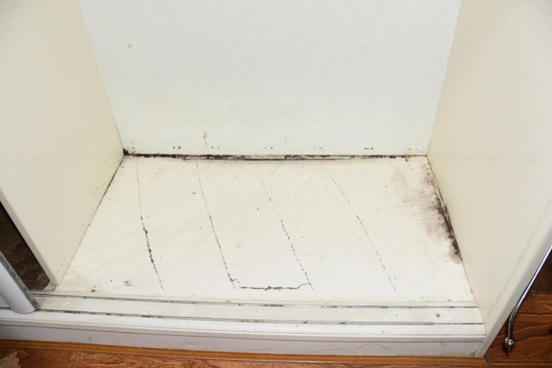 衣柜下层面板表面无明显迹象,但触按有明显不规则空洞