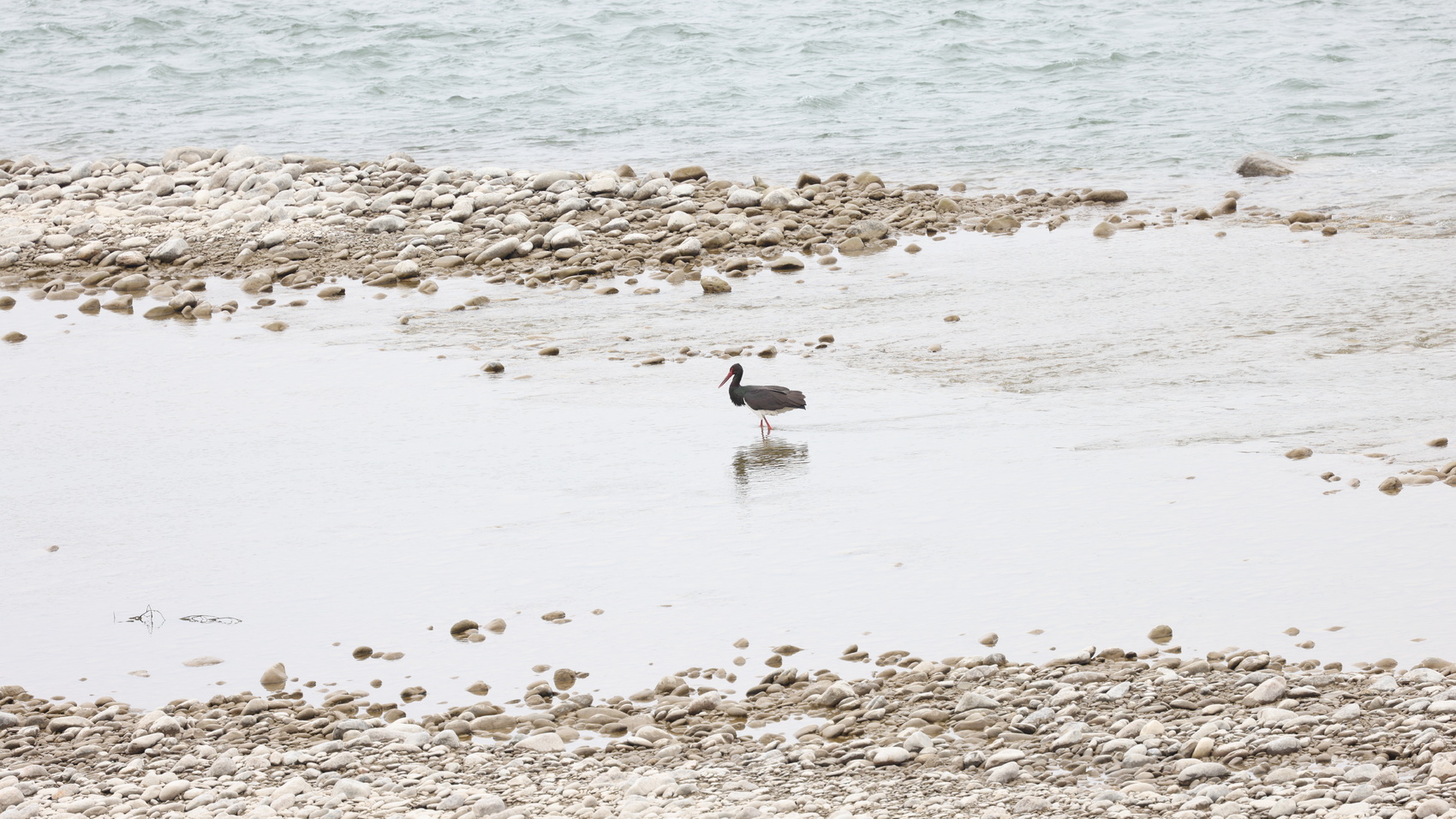 近日,“鸟中大熊猫”黑鹳再次现身昭化区嘉陵江段。邓世江 摄