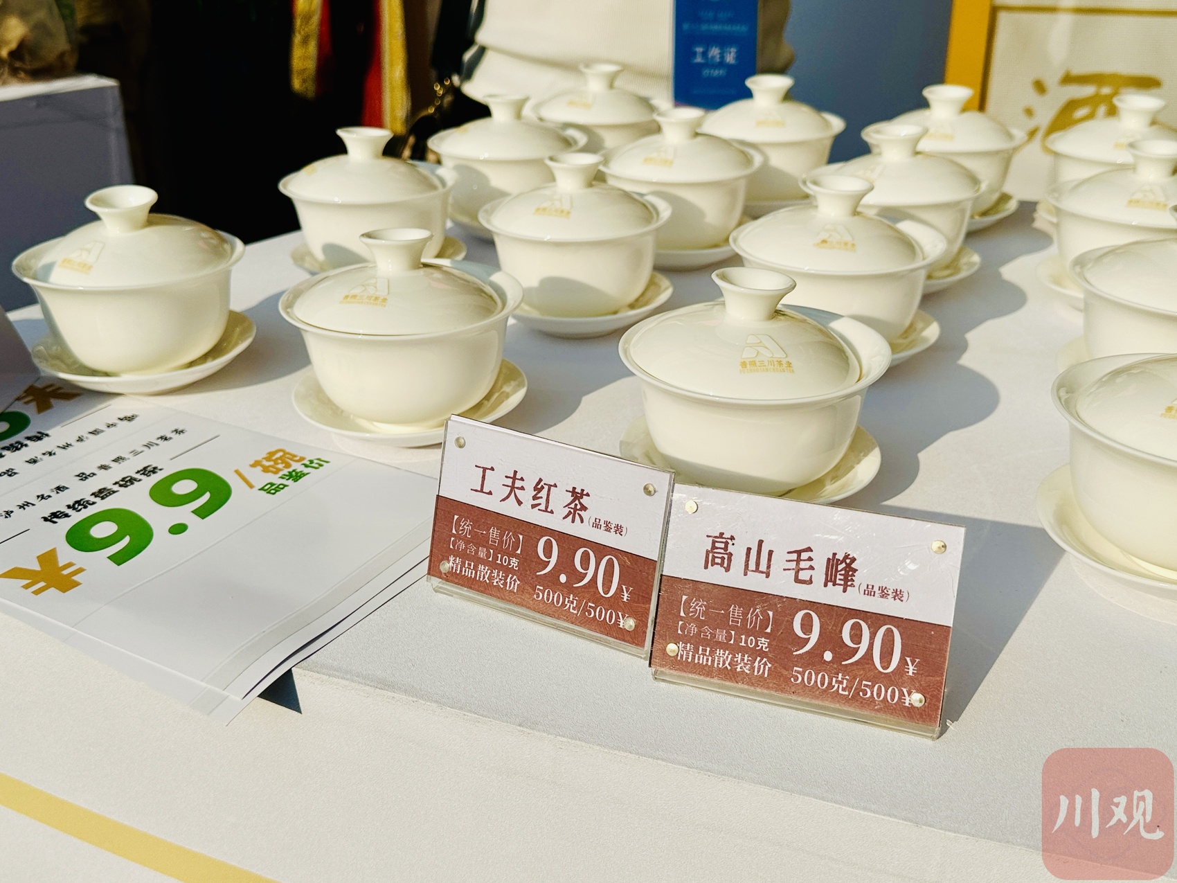 泸州普照三川农业有限公司同样选择“摆摊”展示纳溪特早茶。该公司销售部工作人员邱英表示,此次酒博会,公司不仅在展区内进行产品陈列,还在琼浆悦荟区设点,推出9.9元一杯的盖碗茶,让市民以传统方式体验纳溪特早茶,通过先体验后消费的模式,推广三川那红、红茶、绿茶等系列产品。