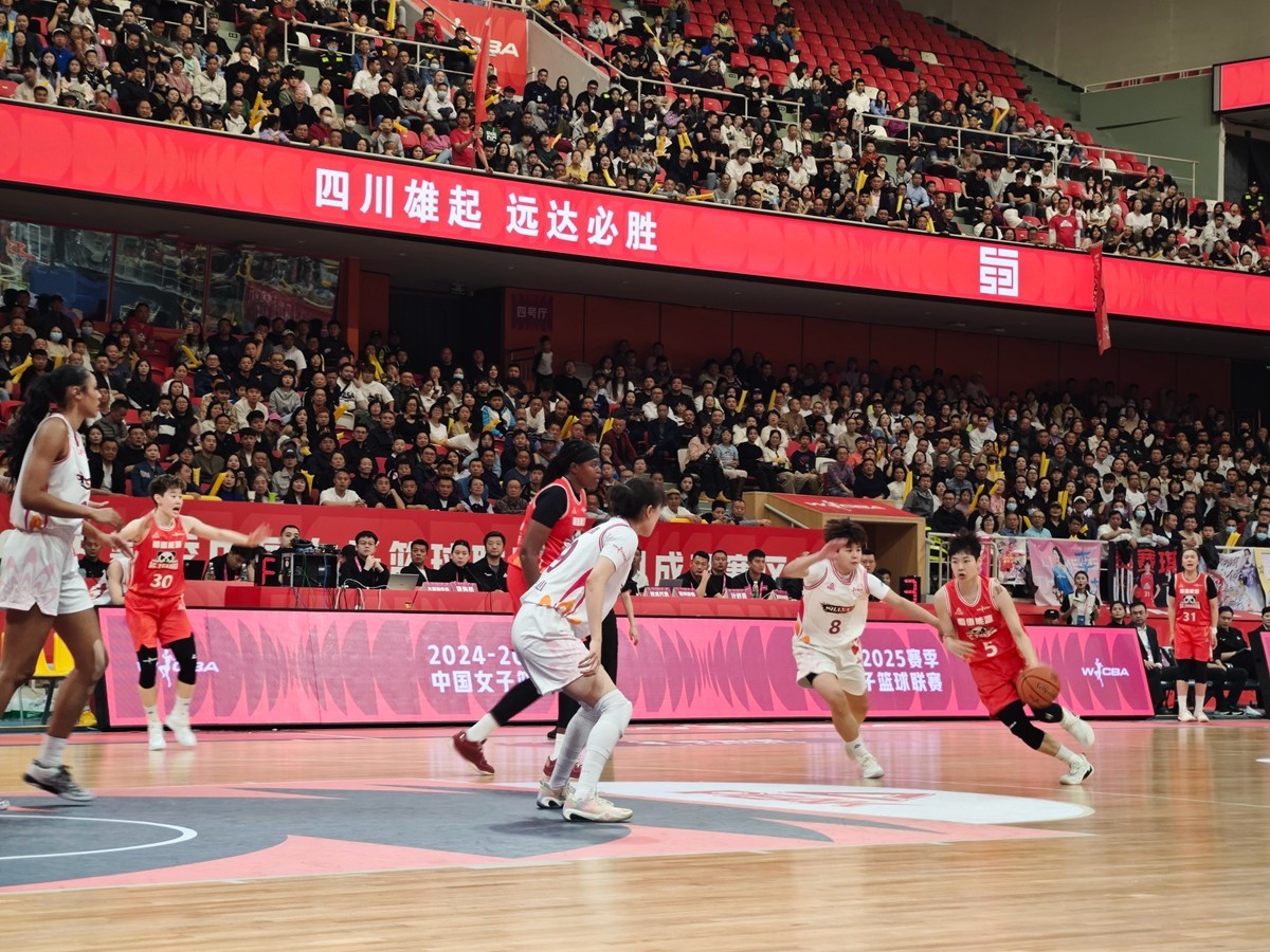 3月27日晚,2024—2025赛季中国女子篮球联赛(WCBA)季后赛半决赛第三回合,四川蜀道远达女篮在主场四川省体育馆,迎来同山西竹叶青酒女篮的较量。经过四节比赛,四川女篮最终以82∶52战胜对手,在五场三胜赛制的比赛里3∶0淘汰山西女篮,率先闯入季后赛总决赛。