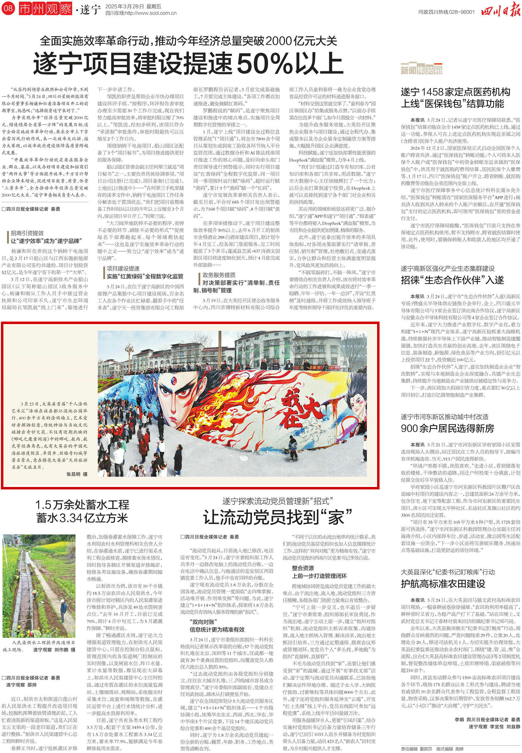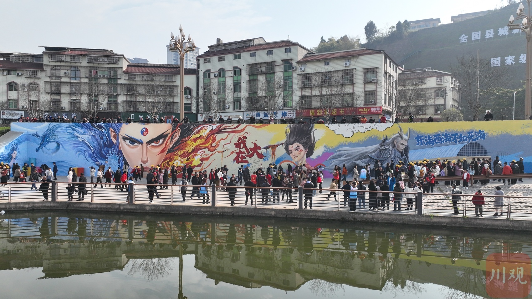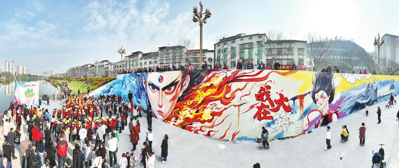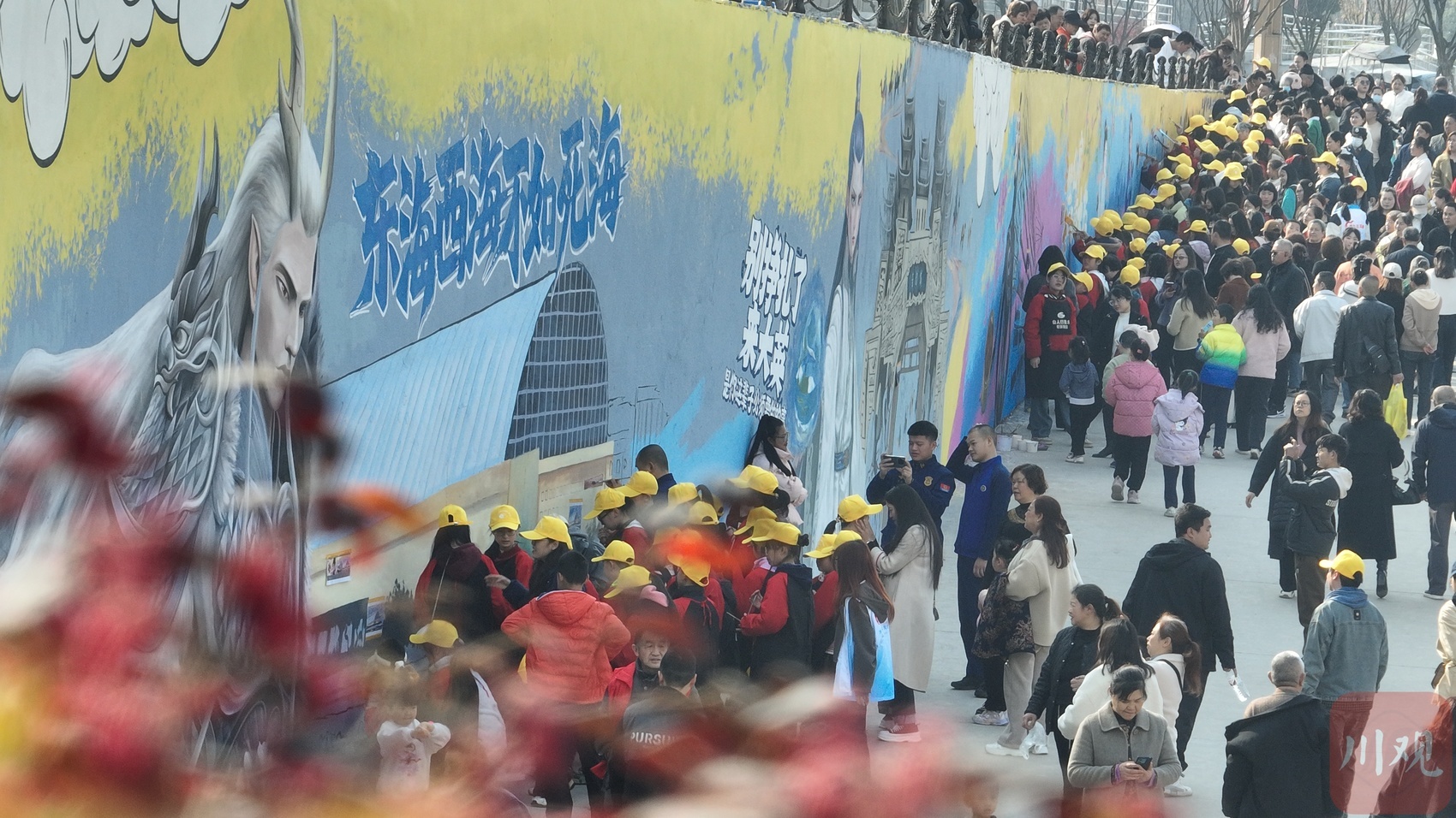 3月23日,大英县首届“千人涂鸦艺术汇”活动在该县郪江湿地公园举行。400余平方米的涂鸦墙上,艺术爱好者挥洒创意,传统神话与当地文化碰撞出奇妙火花。不仅有近期热映的《哪吒之魔童闹海》中的哪吒、敖丙、敖光等经典角色,也有大英县的中国死海旅游度假区、卓筒井、丝路奇幻城等著名景点,意在擦亮大英县“天府旅游名县”文旅名片。