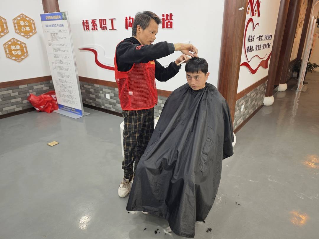 此外,活动还特别设置了理发区和互动体验区。在理发区,志愿理发师们手法娴熟,为外卖骑手、快递小哥等新就业群体提供了便捷的“十分钟焕新”服务。而在互动体验区,太极拳、八段锦功法教学与推拿按摩实操演示相结合,打造了一堂既生动有趣又实用易学的中医养生课堂。