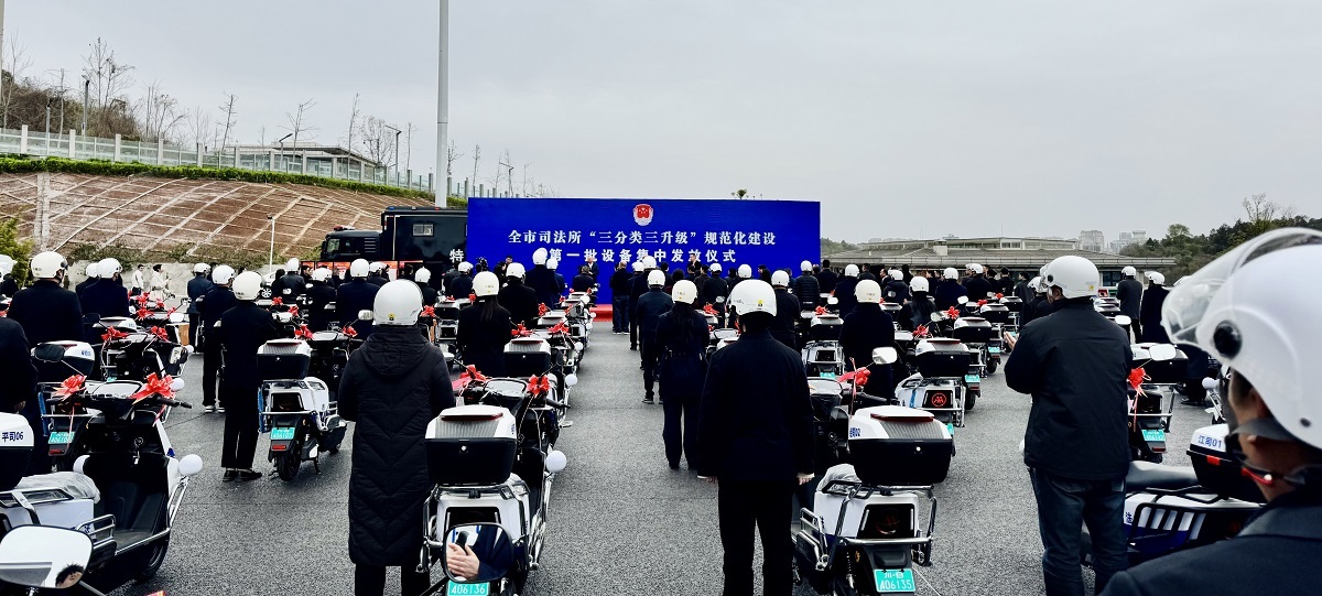 为进一步提升基层基础业务水平,有效解决司法所面临的交通及信息化装备不足等问题,3月28日,绵阳市举办全市司法所“三分类三升级”规范化建设第一批设施设备集中发放仪式,全市司法行政系统相关150余人参加活动。