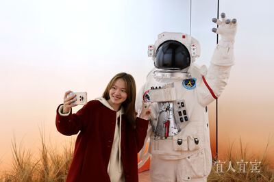 身着“航天服”的小朋友在参观航天科技艺术展 庄歌尔 摄