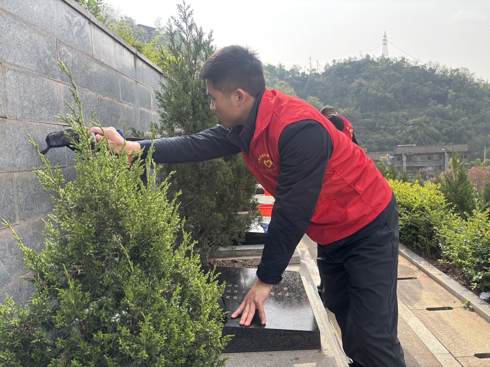 达州市退役军人事务局工作人员董国明仔细地擦拭着面前的墓碑,斑驳的文字在清水的擦拭下仿佛又有了新的色彩。“心里特别沉重,我边擦边看边想,觉得今天的幸福生活来之不易,应该好好珍惜。”而作为一名退役军人,他对每一位英烈更是有着很深的敬仰。