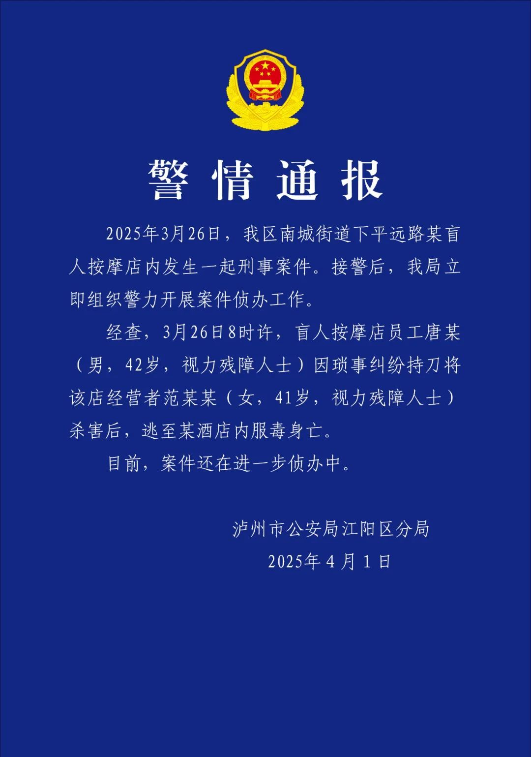 4月1日,泸州市公安局江阳区分局发布警情通报,内容如下: