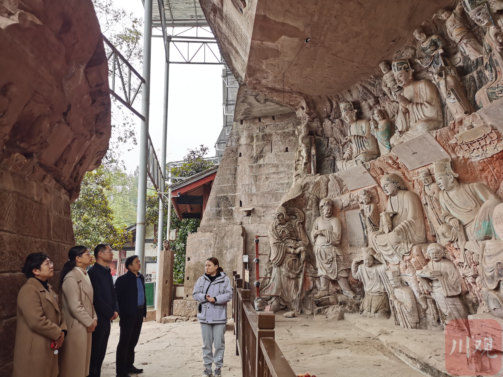在文旅融合方面,联合运营“安柠石光·资足常乐”区域文旅IP,探索推出大足石刻——安岳石窟等景区联票联营机制,实现品牌活动引流、消费场景升级与全域产业联动。协同推进“1小时党建文旅圈”建设,联合规划跨省旅游交通驿站、自驾营地等设施,打造“安岳—大足”跨省公交专线党建宣传示范线。