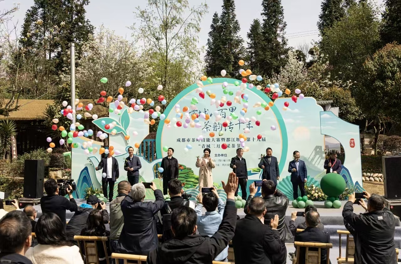 相传,青城山一带的“明前茶”受到饮茶者的追捧,后来,人们就在每年农历三月三这天,诚邀各地各界人士齐聚青城山麓同庆三月三采茶节,分享劳动果实。作为非物质文化遗产保护单位,四川都江堰青城茶叶有限公司为此打出“三茶”融合“组合拳”,推动都江堰茶产业高质量发展。2024年年底,成都市人民政府正式公布了成都市第九批非物质文化遗产代表性项目名单,“青城三月三采茶节”上榜成为民俗类地方非遗代表性项目。
