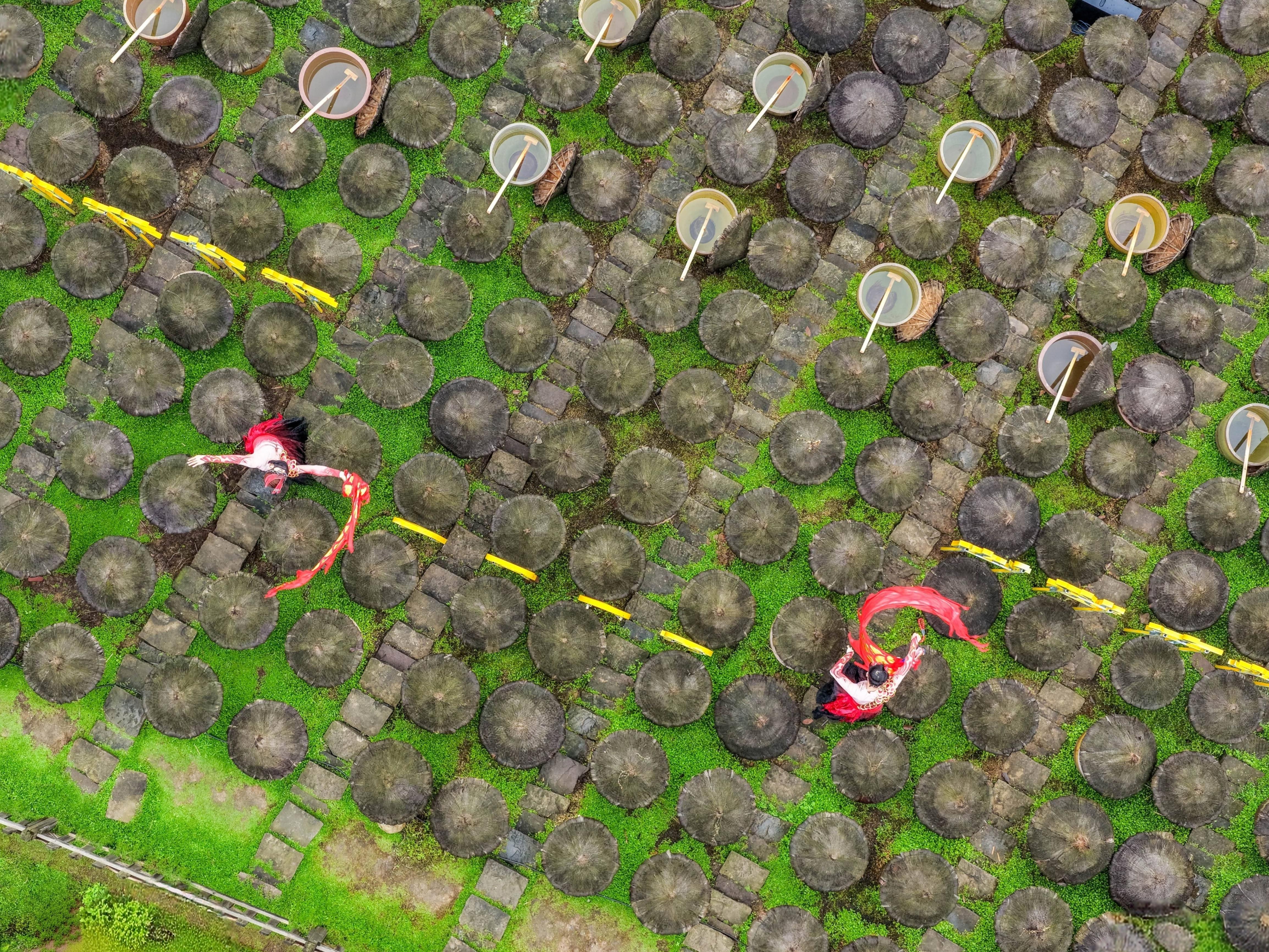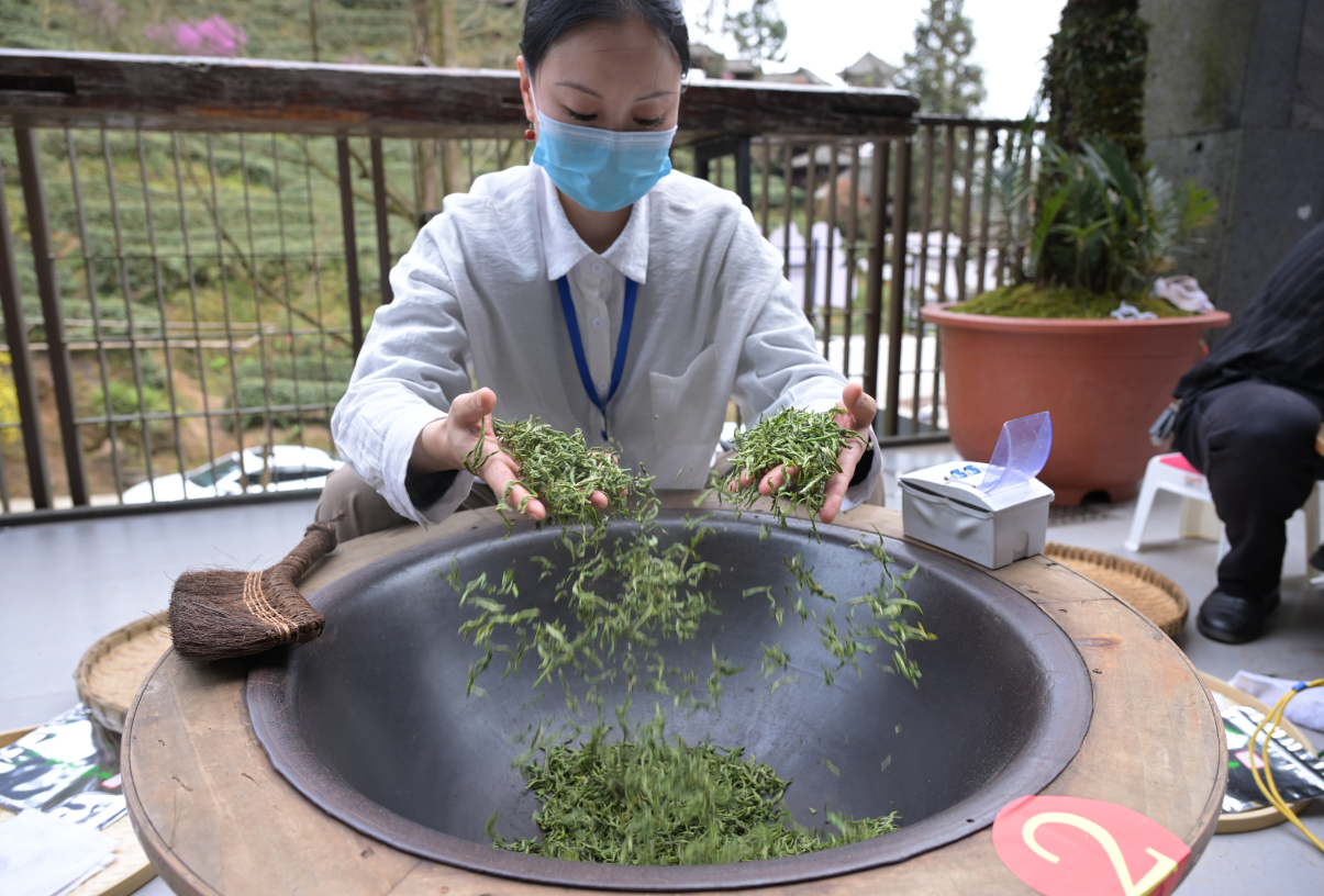 成都市农业农村局在采茶节现场举办了成都市茶叶技能大赛(卷曲型绿茶)初赛。10多位来自成都市各区(市)县的选手,聚焦手工炒茶核心技艺——“抖、翻、揉、焙”,在一炒一捻间体悟“看茶制茶”的千年智慧,沉浸式精进技艺,在交流中碰撞经验。