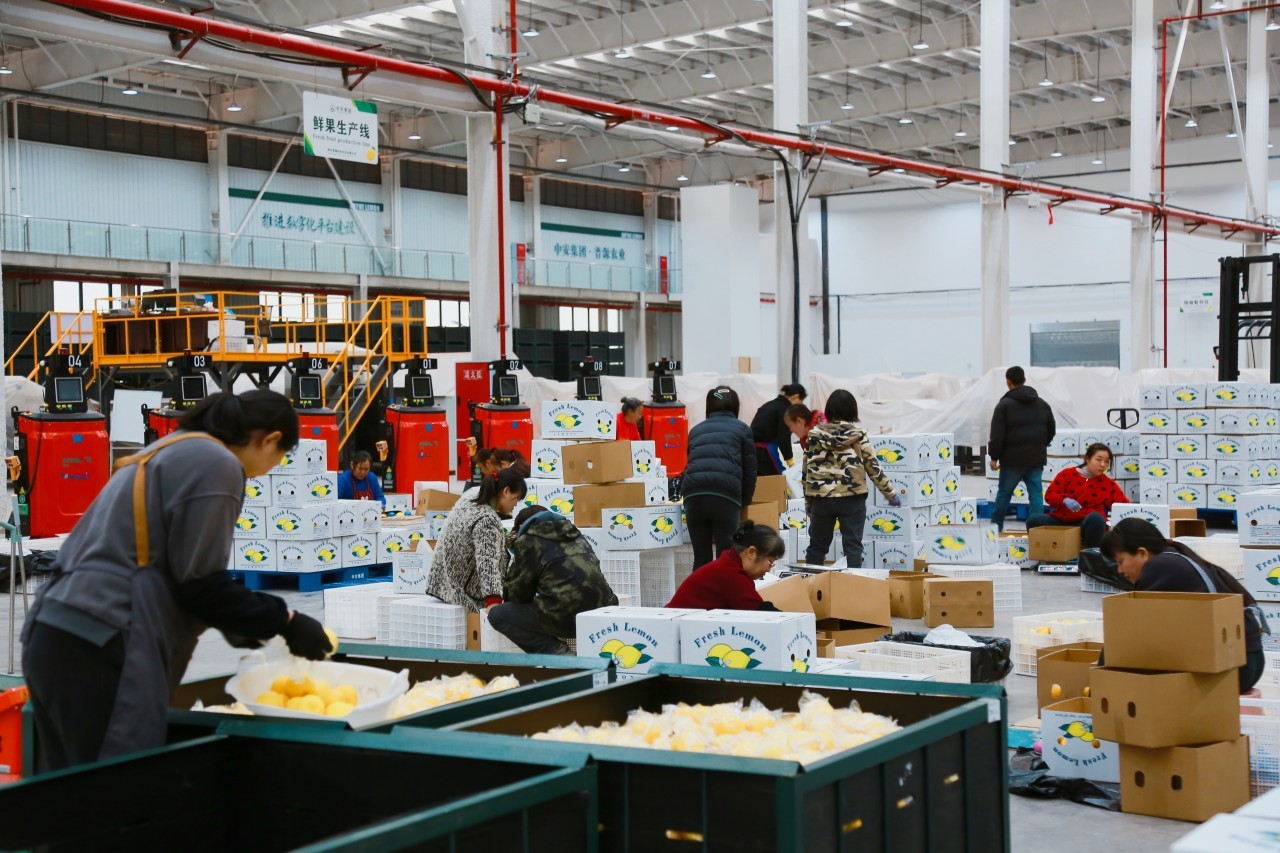四川普源农业开发有限公司正在分拣柠檬进行打包。