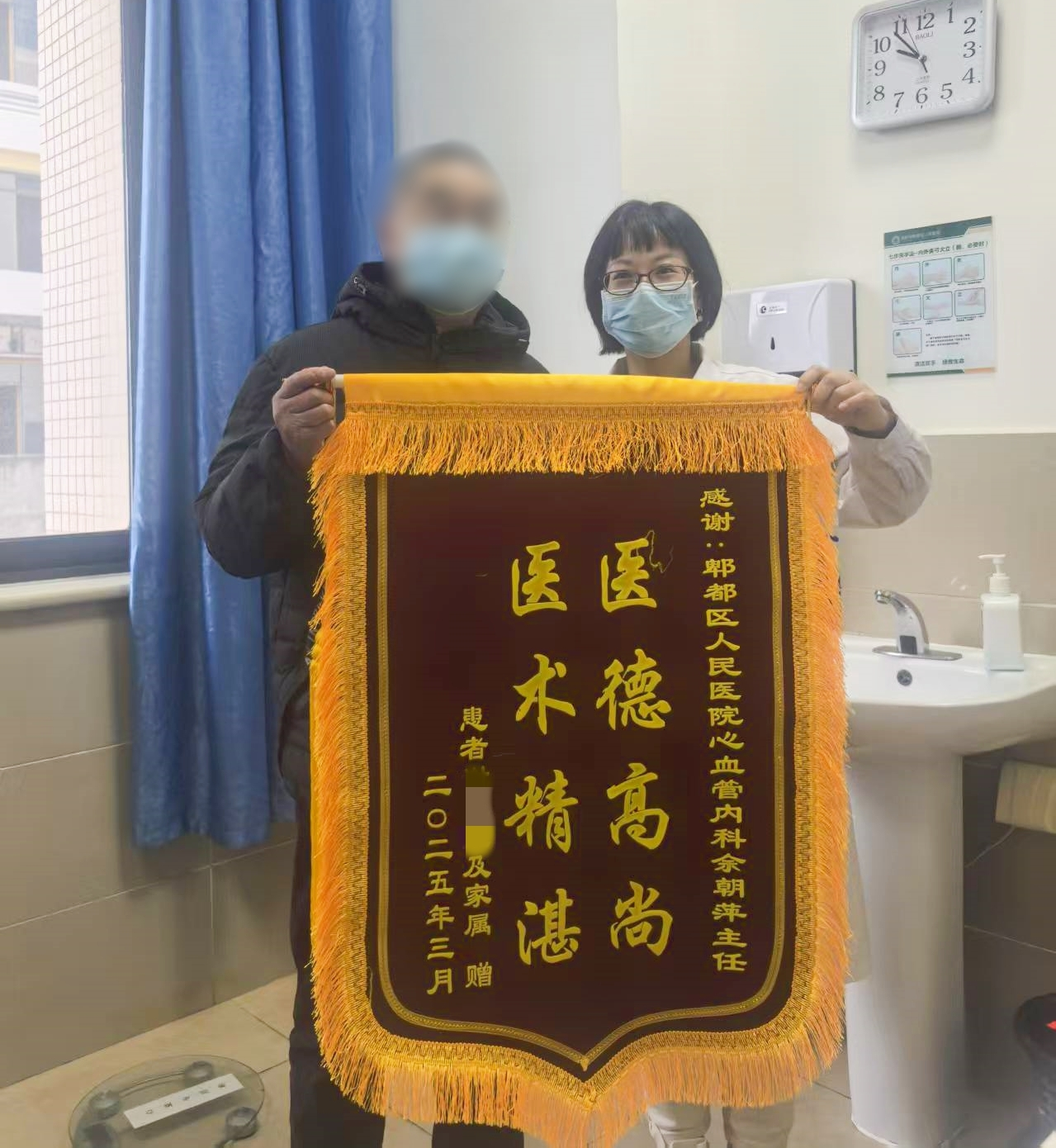 “谢谢余主任,我现在心里感觉很舒畅,一点也不憋气了。”半年前,六旬老人被查出心脏三支主要的冠状动脉严重狭窄,一支完全闭塞,另外两支主血管重度狭窄,随时都有生命危险。如今,在成都市郫都区人民医院心血管内科主任余朝萍团队的努力下,他严重狭窄的三支血管被全部打通,已经重返健康生活。3月31日,刚刚痊愈的老人便向医护人员送去锦旗表示感谢。