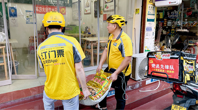 美团外卖合江站党支部党员服务商户。供图 / 泸州市委社会工作部