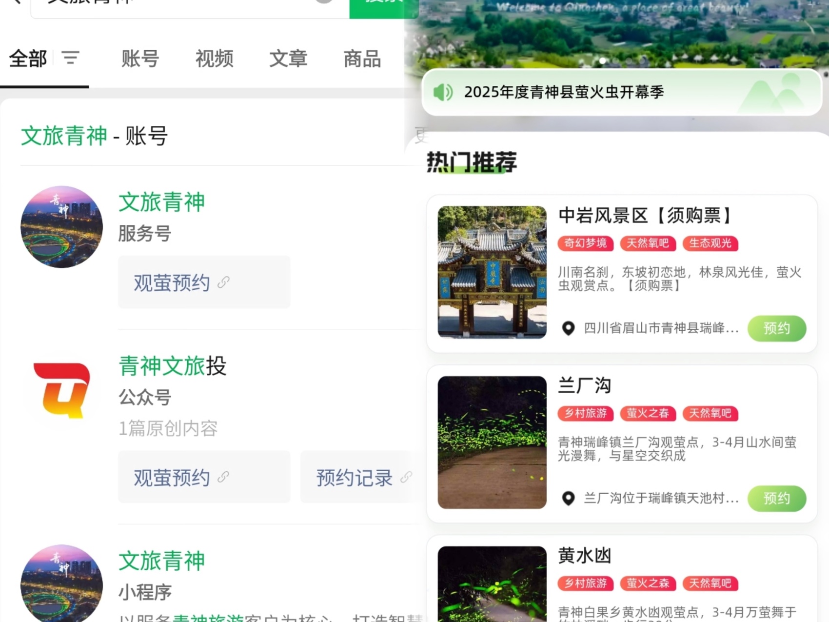 “青神文旅投”公众号预约界面