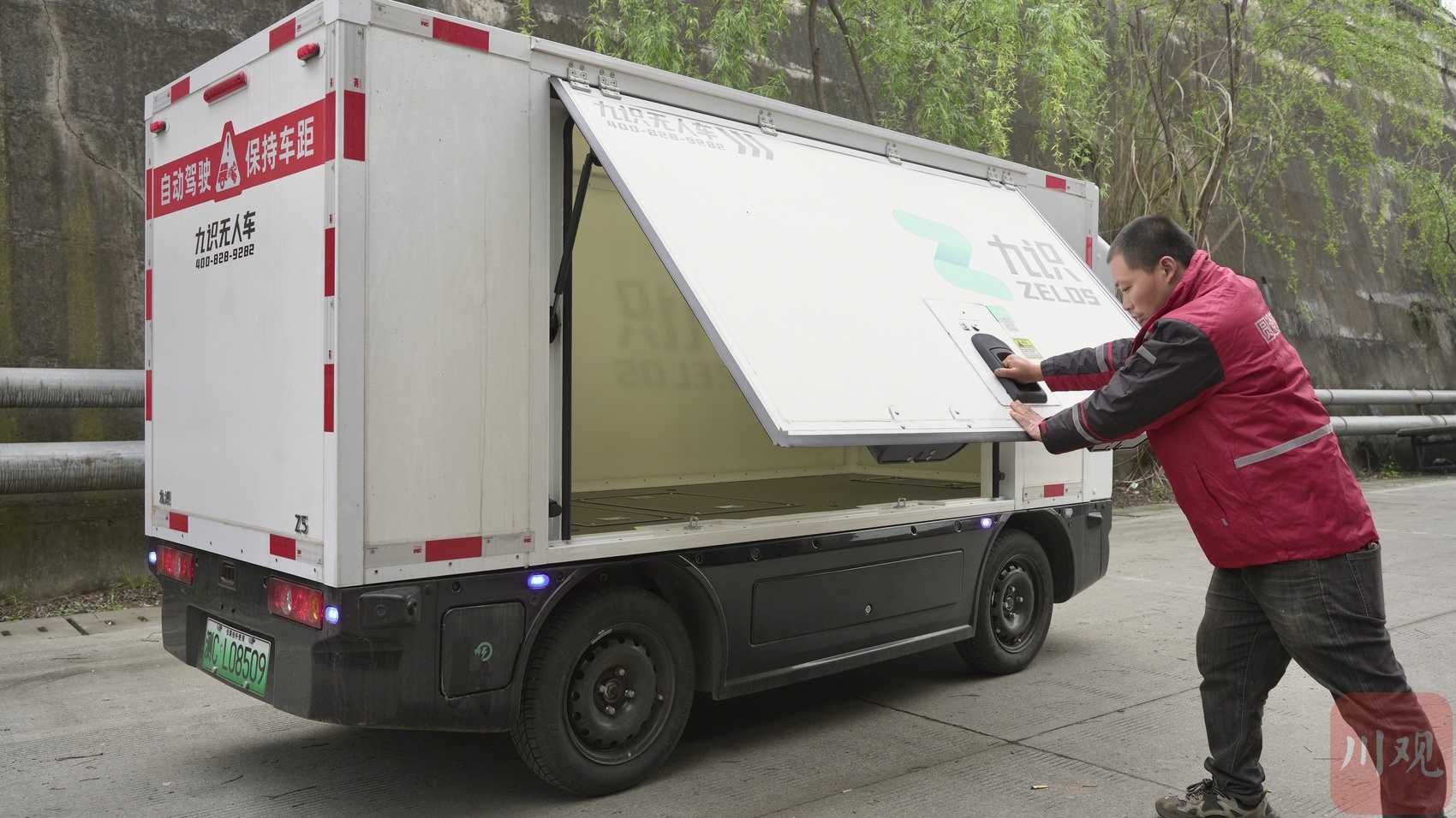 据了解,这是遂宁市首批运营的无人驾驶配送车,由九识(苏州)智能科技有限公司与四川睿智廷升新能源科技有限公司共同进行本地化部署,将无人驾驶技术运用于城市快递、物资配送等多类场景。