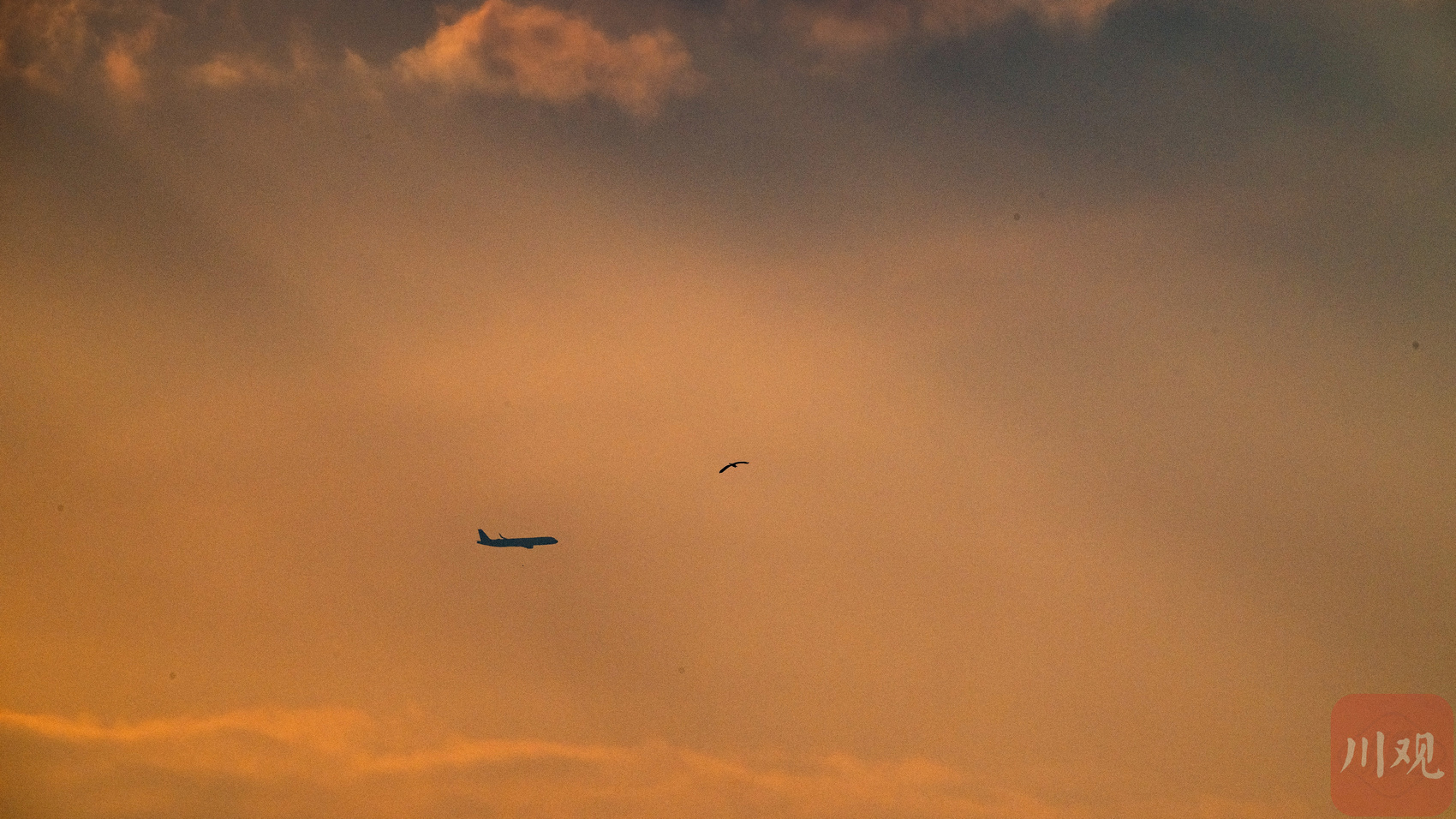 成都这傍晚的夕阳和降落的航班简直是绝配,感觉每架飞机都像是在奔赴一场金色的约会,这画面能直接裱起来当壁纸!