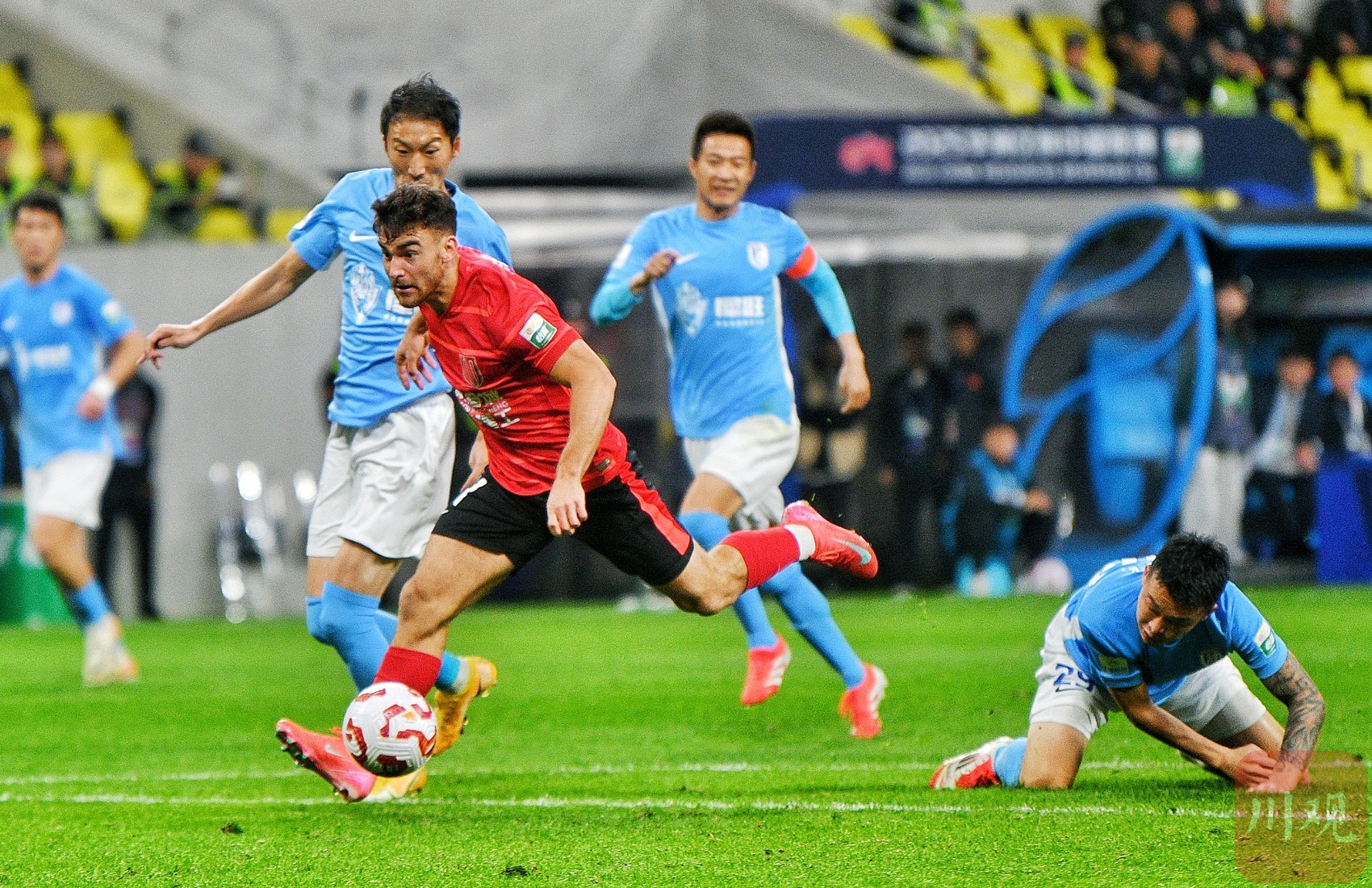 成都蓉城队员11号(红衣)成功突破。