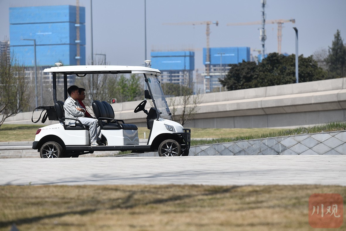 3月26日,智能漫游无人车在成都科创生态岛通过自主路径规划,无人接驳载客畅游园区。