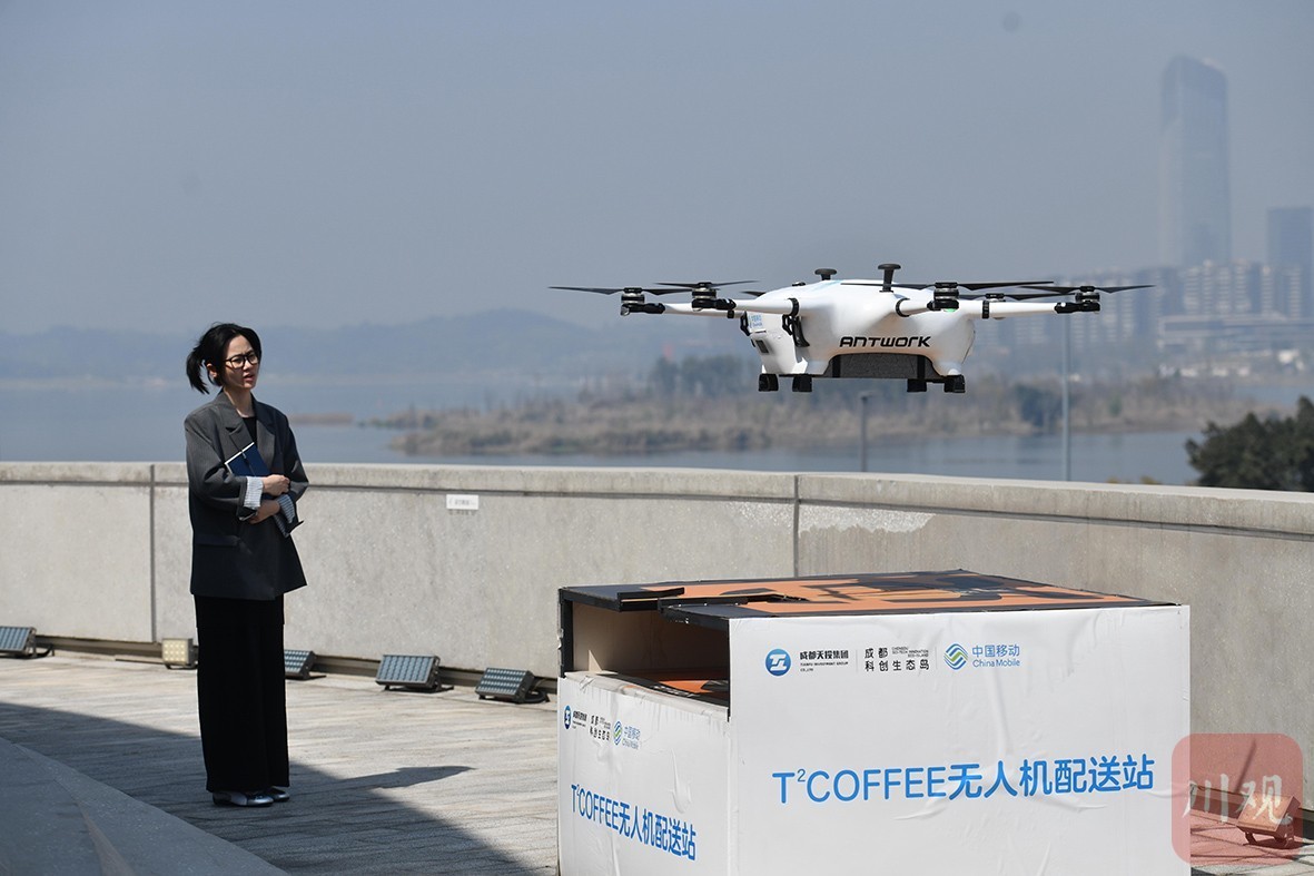 3月26日,迅蚁科技的物流无人机在成都科创生态岛完成了场景验证,顺利为工作人员送达文件。
