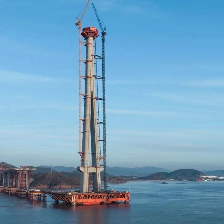 大桥锚碇采用整体式沉井基础,平面尺寸76.4米×76.4米,平面分36个井孔,相当于14个篮球场大小,总高43米,首节钢壳高8米,第二节至第七节标准高4.5米,第八节高8米;采用分三次接高三次下沉的施工工艺,接高和下沉交替进行,其中,此次第四节共浇筑混凝土约7650立方米。
