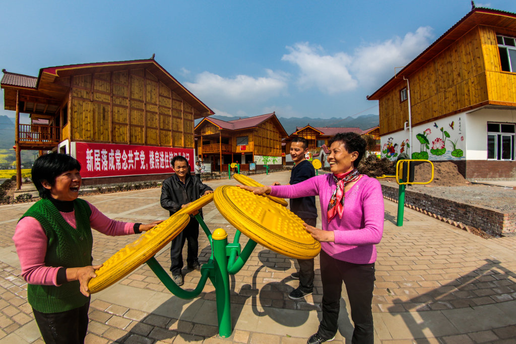 龙门乡白伙新村,村民在新村广场上健身。郝立艺 摄