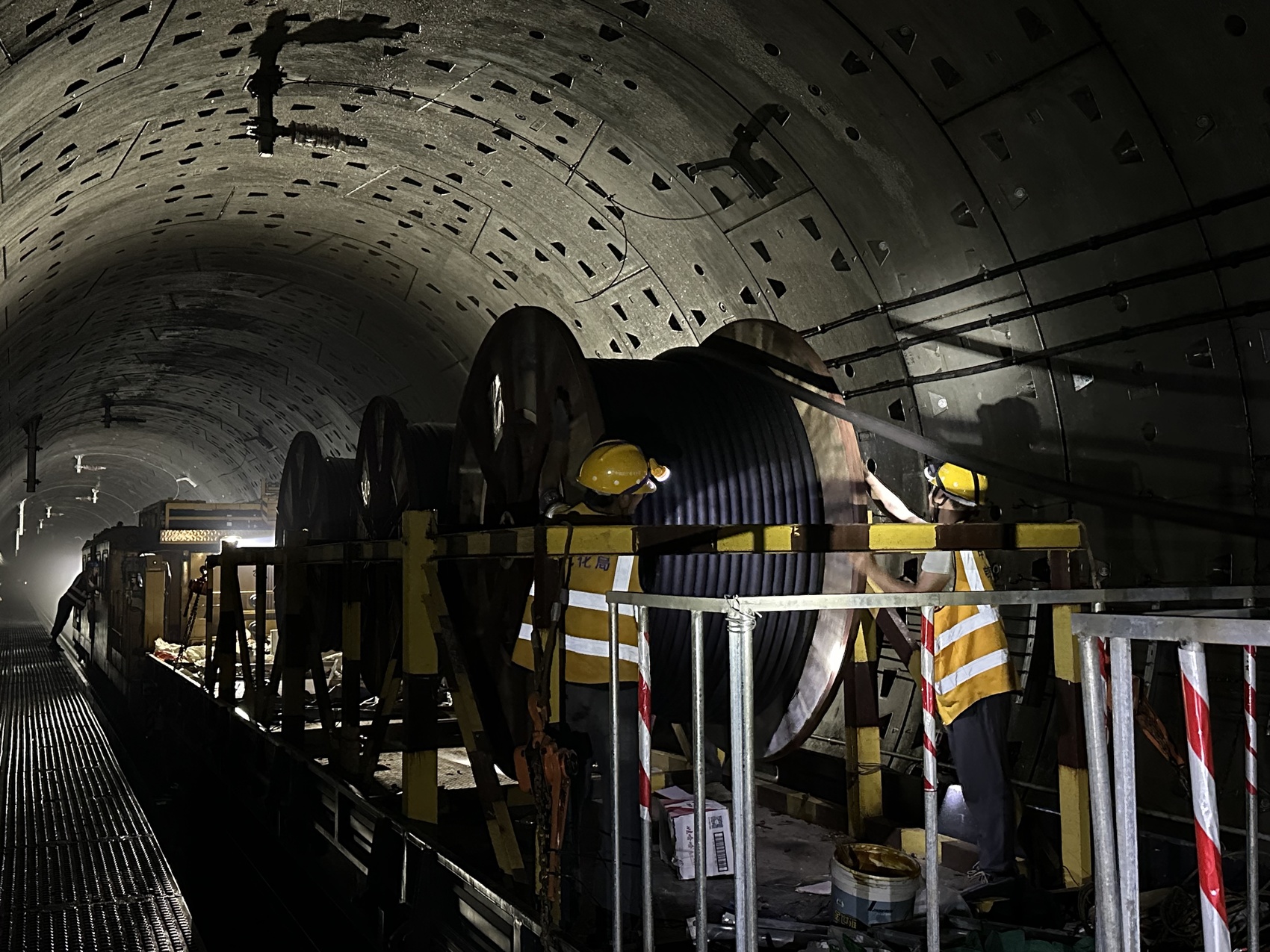 工作人员为成都轨道交通13号线一期项目进行环网电缆铺设。成都轨道集团供图