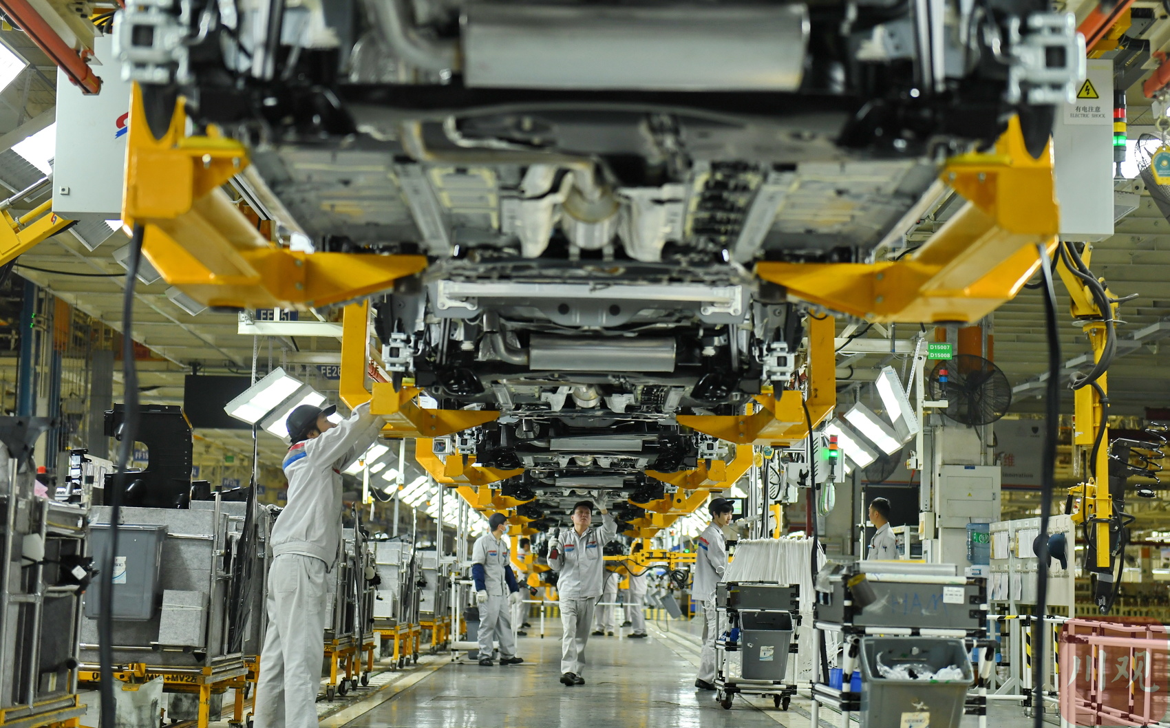 2025年4月8日,在神龙汽车有限公司成都工厂总装车间内,装配工人忙碌作业。