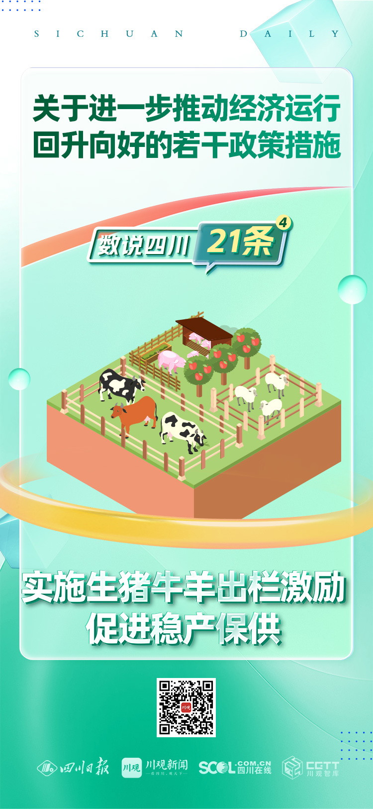 4月1日,四川省人民政府办公厅印发《关于进一步推动经济运行回升向好的若干政策措施》(以下简称“21条”)。其中明确,对今年超额完成生猪、牛、羊出栏目标任务的市(州),直接进行补贴激励。