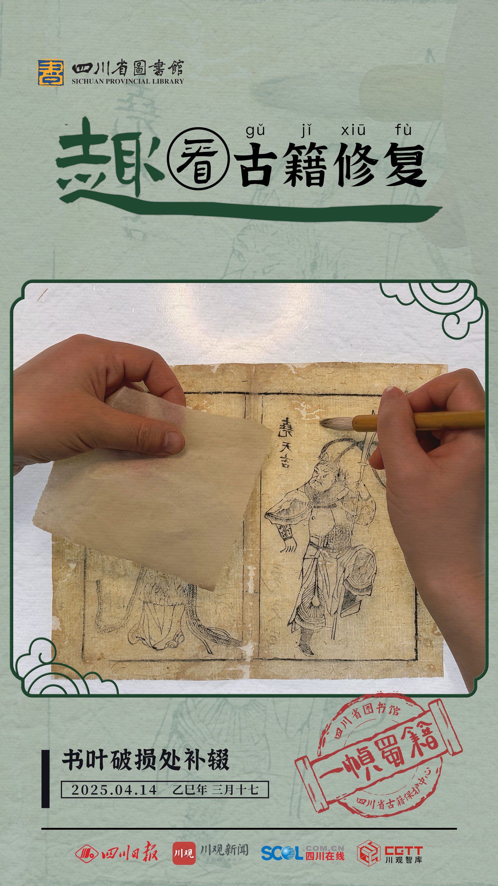 4月14日,一帧蜀籍带您了解古籍修复中书叶破损处补缀。