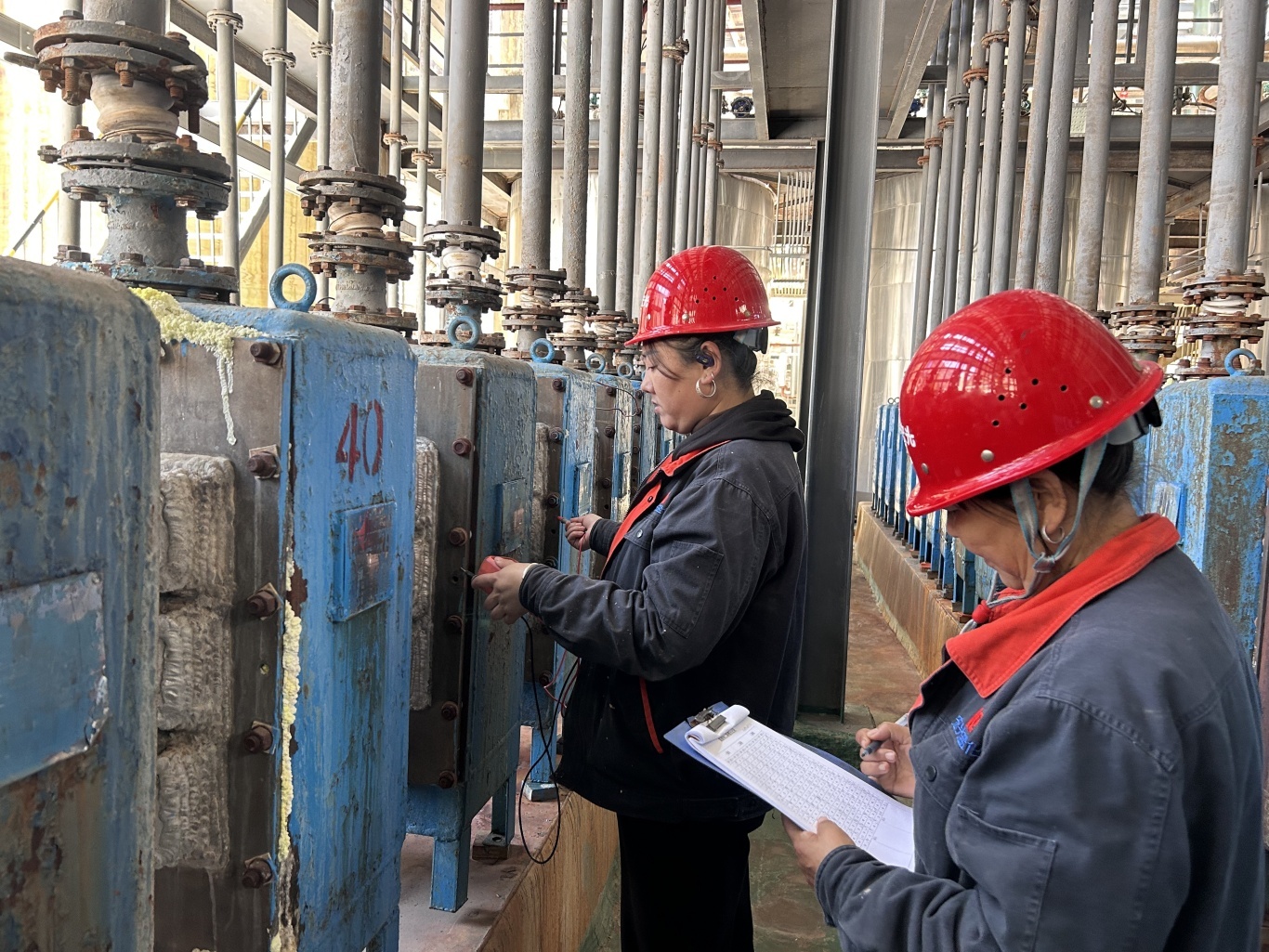 四川长化宏光盐化工的员工们正在操作仪器。