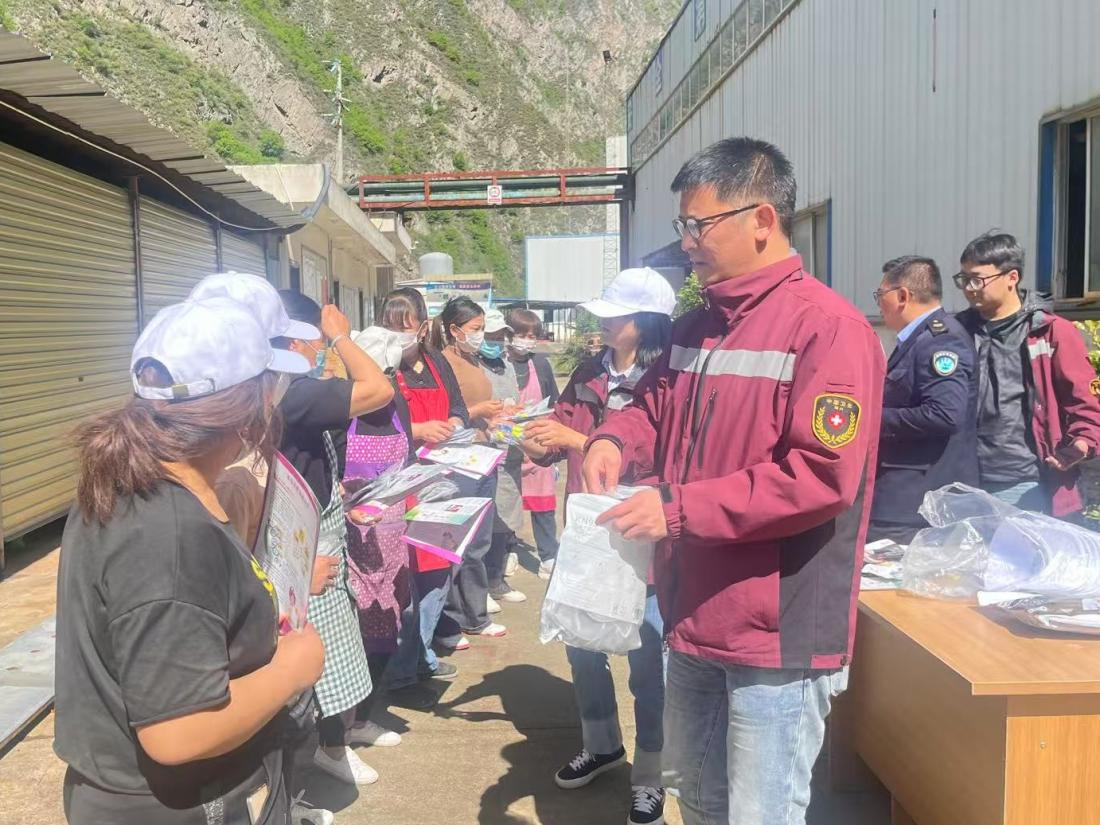理县人社局、卫健局等多部门服务队走进工厂开展法律、职业防护等知识宣传。
