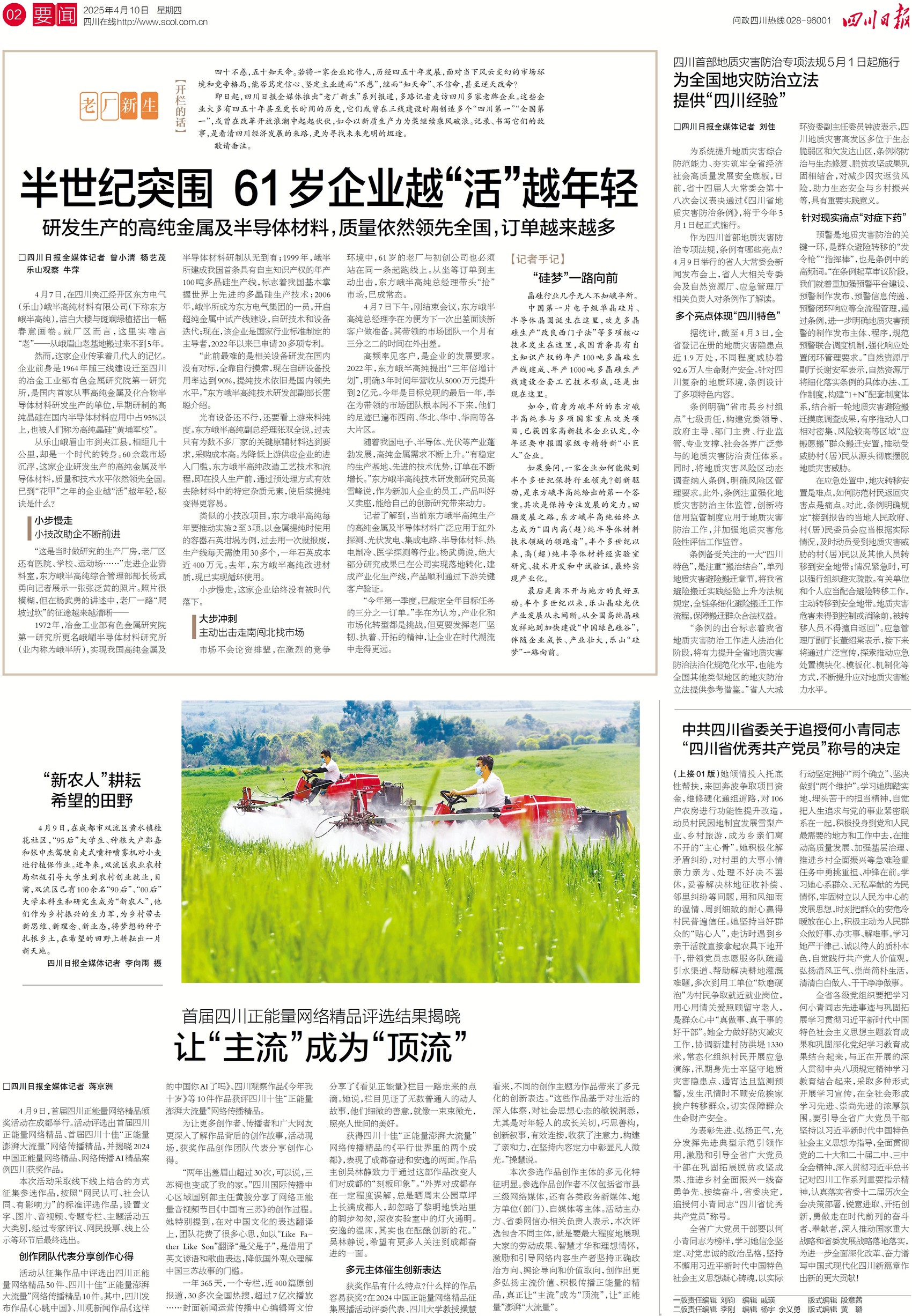 4月9日,首届四川正能量网络精品颁奖活动在成都举行。活动评选出四川正能量网络精品50件、四川十佳“正能量澎湃大流量”网络传播精品10件,并揭晓2024中国正能量网络精品、网络传播AI精品案例四川获奖作品。关注今日二版,看主创们分享创作历程。